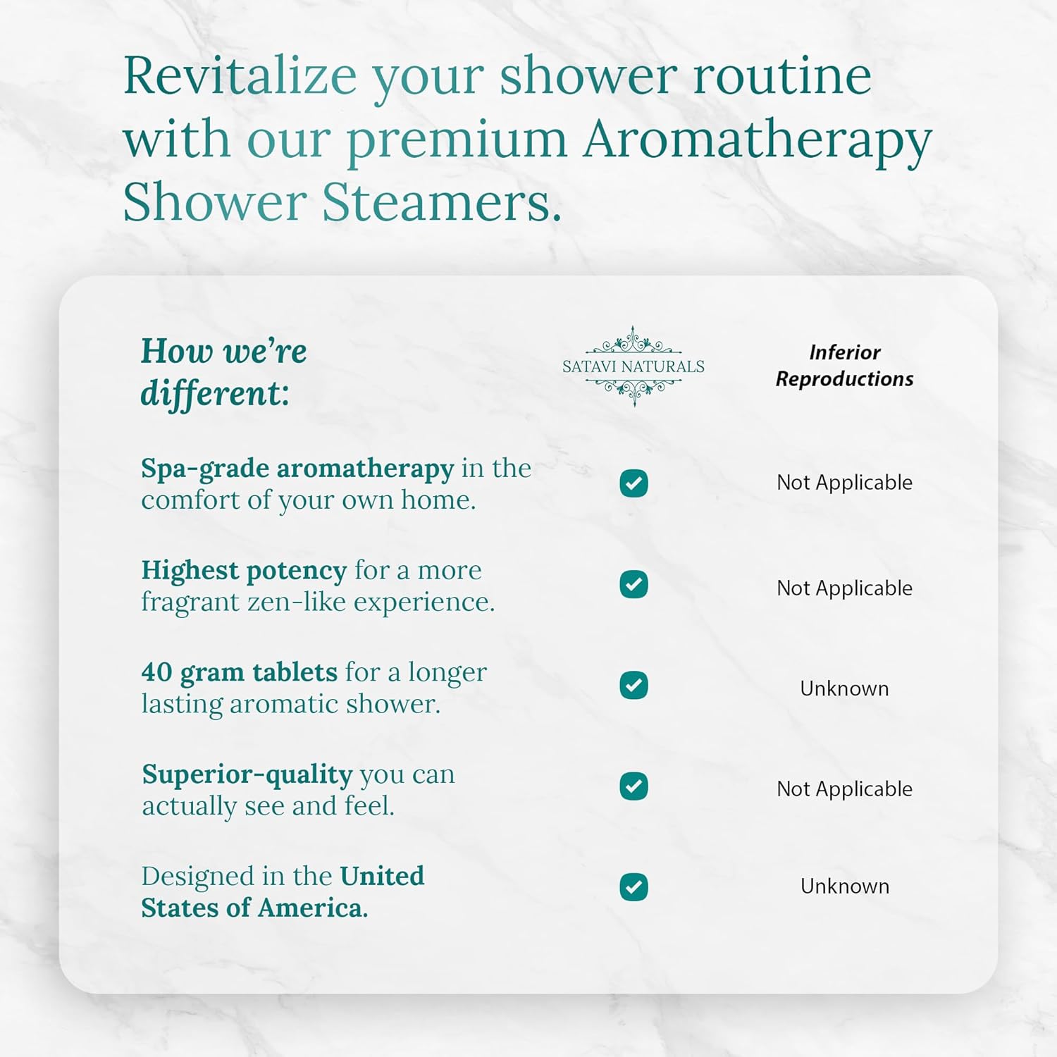 - Spa-Like Experience: Elevate your self-care routine with Satavi Naturals Aromatherapy Shower Steamers! Our thoughtfully curated, professional-grade products bring the luxury of a spa directly to your home.