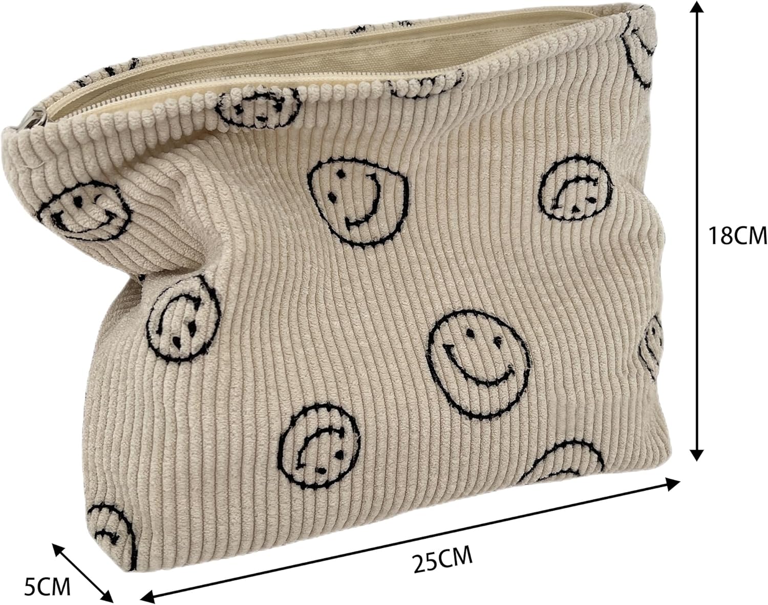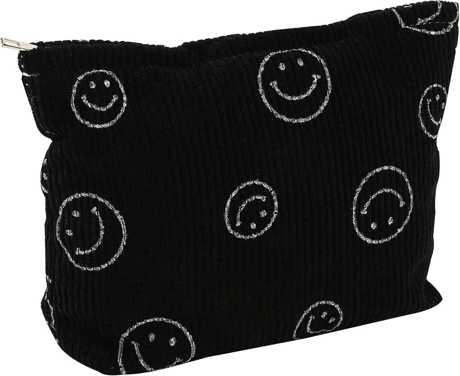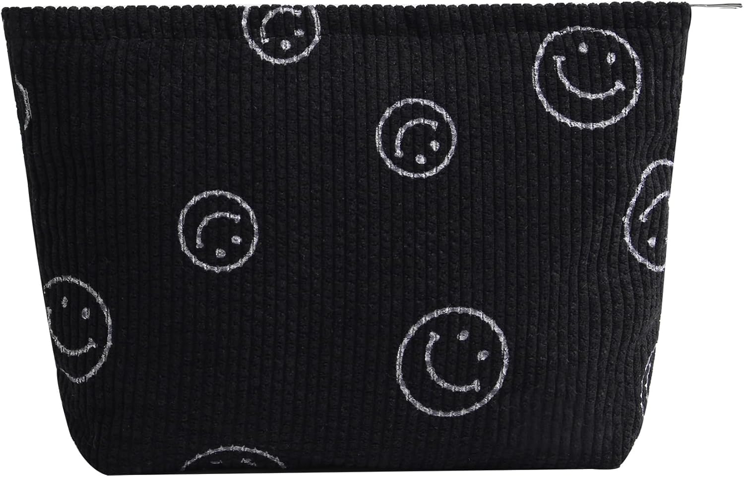 Cosmetic Bags for Women - Corduroy Cosmetic Bag Aesthetic Women Handbags Purses Smile Dots Makeup Organizer Storage Makeup Bag Girls Case Bags (A-Black)