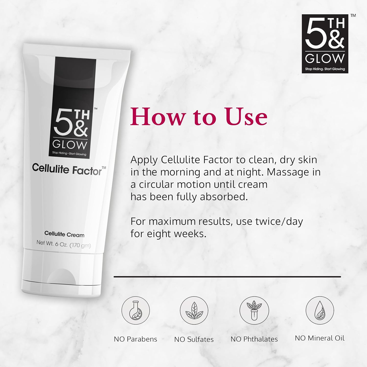 5th & Glow Cellulite Factor - Skin Tightening Cream for Body, Thighs, Legs & Butt - Skin Firming Anti-Cellulite Lotion for Smoother Skin & Stomach - 6 oz
