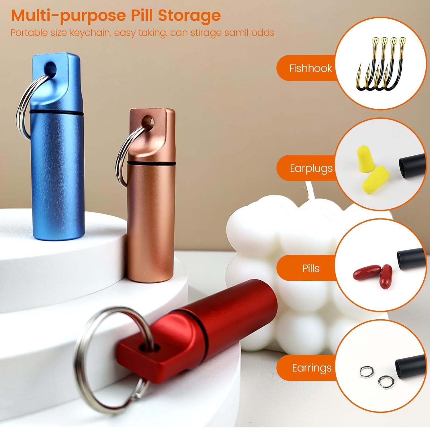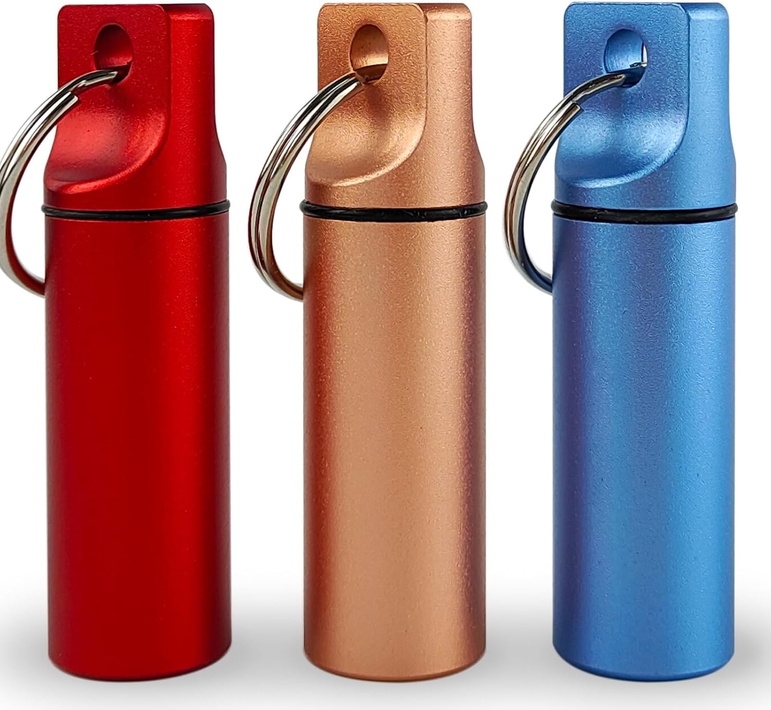 Small Pill Organizer Box Waterproof Keychain Pill Holder Portable Travel Pill Container Metal Case with Keyring for Outdoor Camping Travel