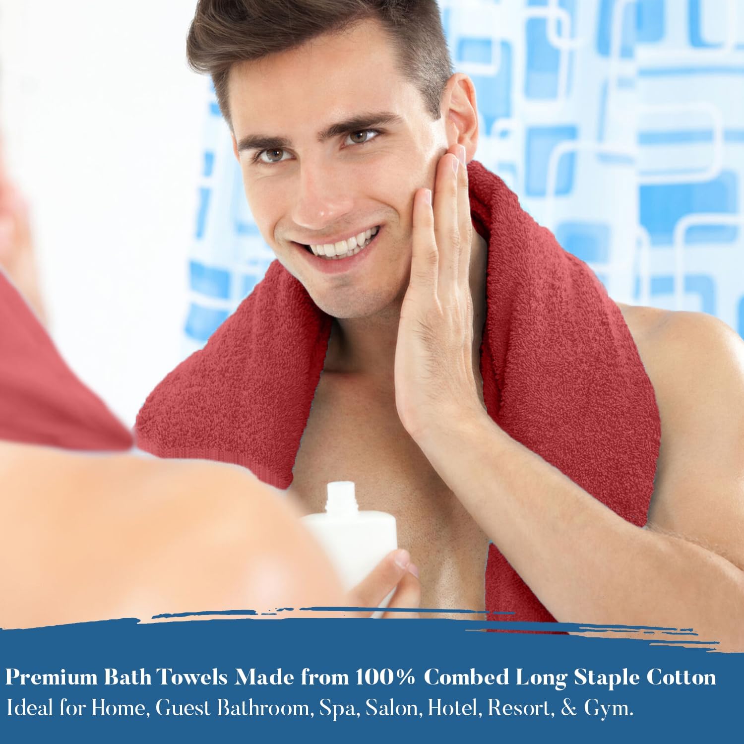 DAN RIVER Bath Towels Set of 4, 27 x 54 Inches, 100% Cotton, Larger & Lighter Weight, Quicker to Dry, Super Soft and Absorbent, Ideal Absorbent Bath Towels for Daily Use, Red