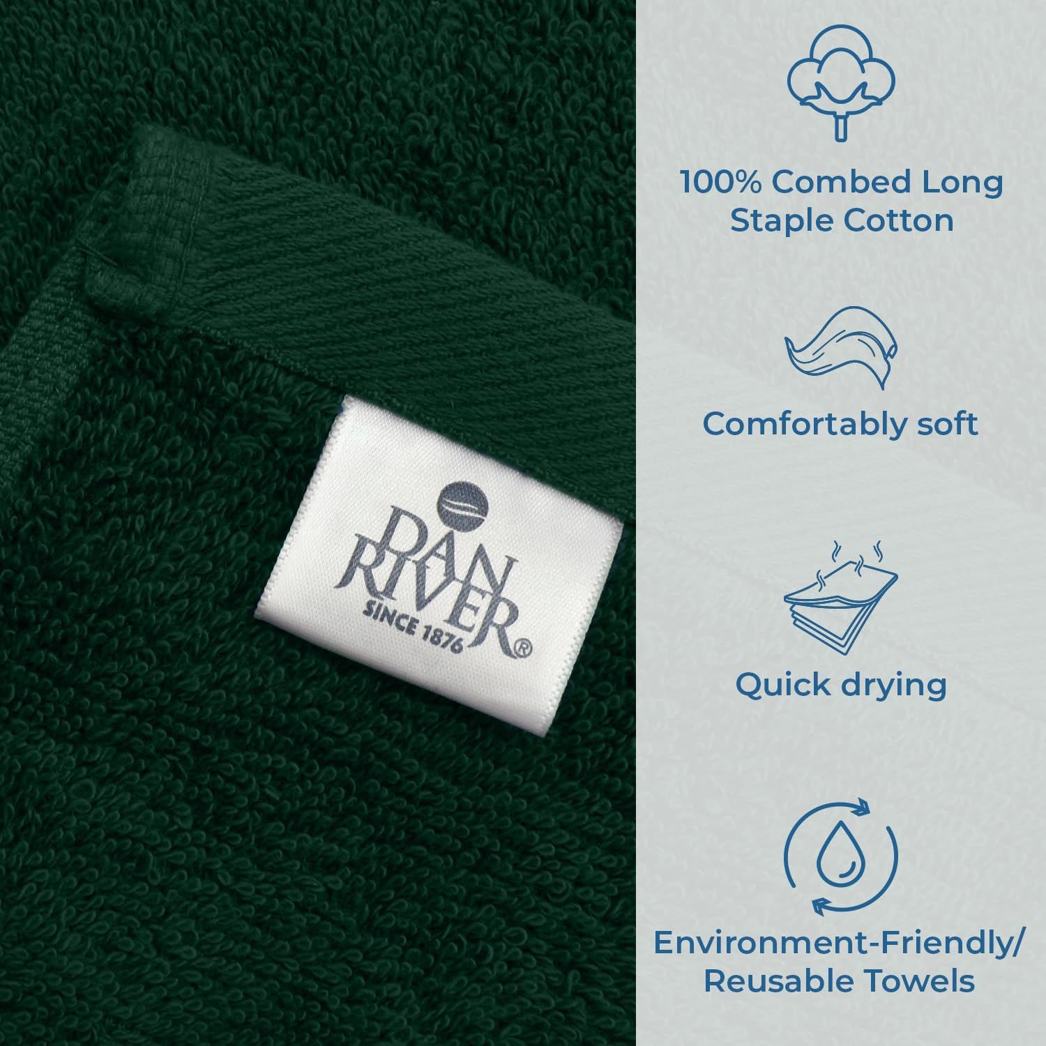 DAN RIVER Bath Towels Set of 4, 27 x 54 Inches, 100% Cotton, Larger & Lighter Weight, Quicker to Dry, Super Soft and Absorbent, Ideal Hotel Towels for Daily Use, Huntergreen