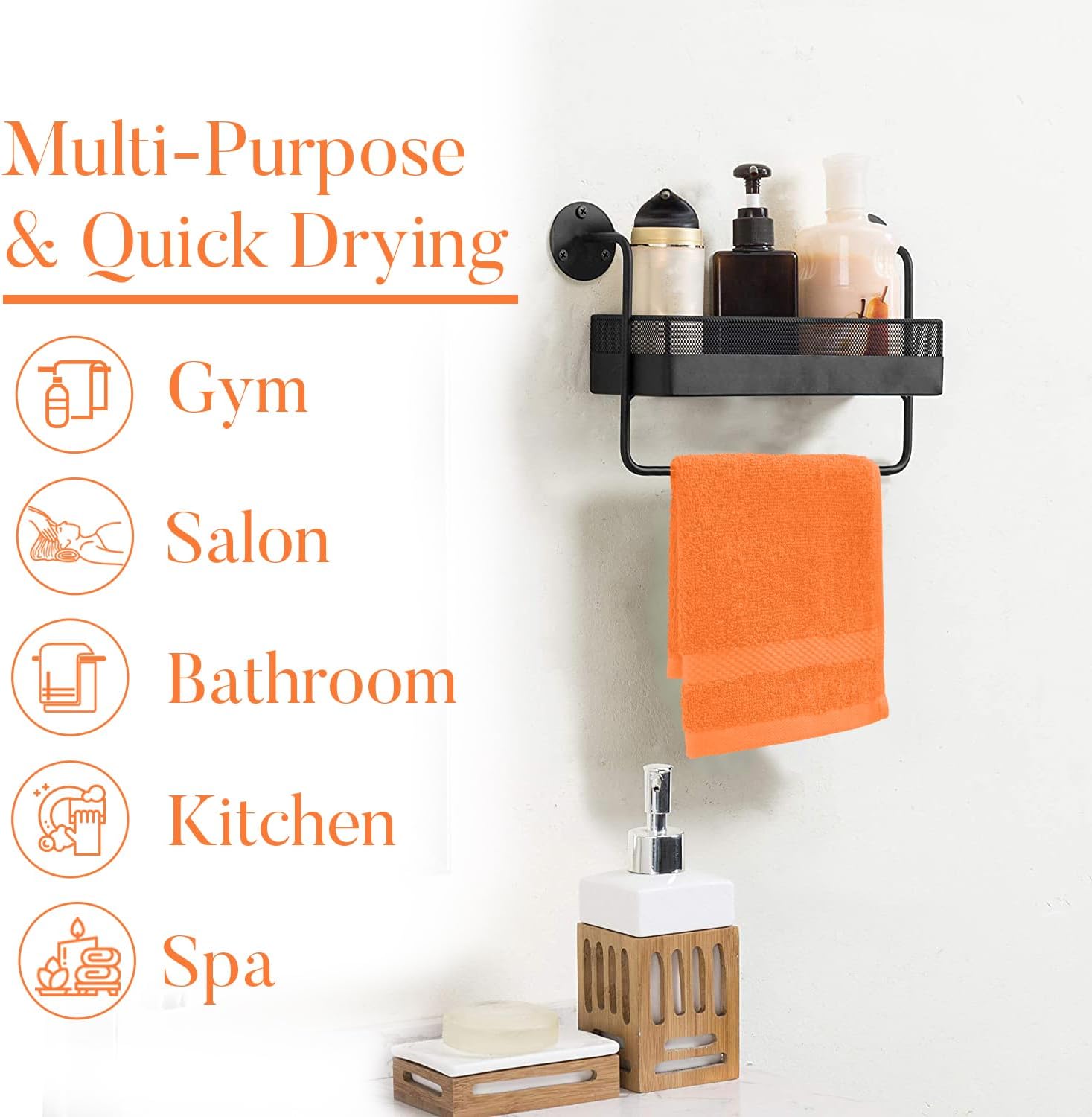 DAN RIVER 12-Pack Premium 100% Cotton Orange Face Towels – Reusable Face Towel Set, Soft & Absorbent Luxury WashCloths for Bathroom & Body – Hand and Face Towels, 550 GSM (12x12 in)