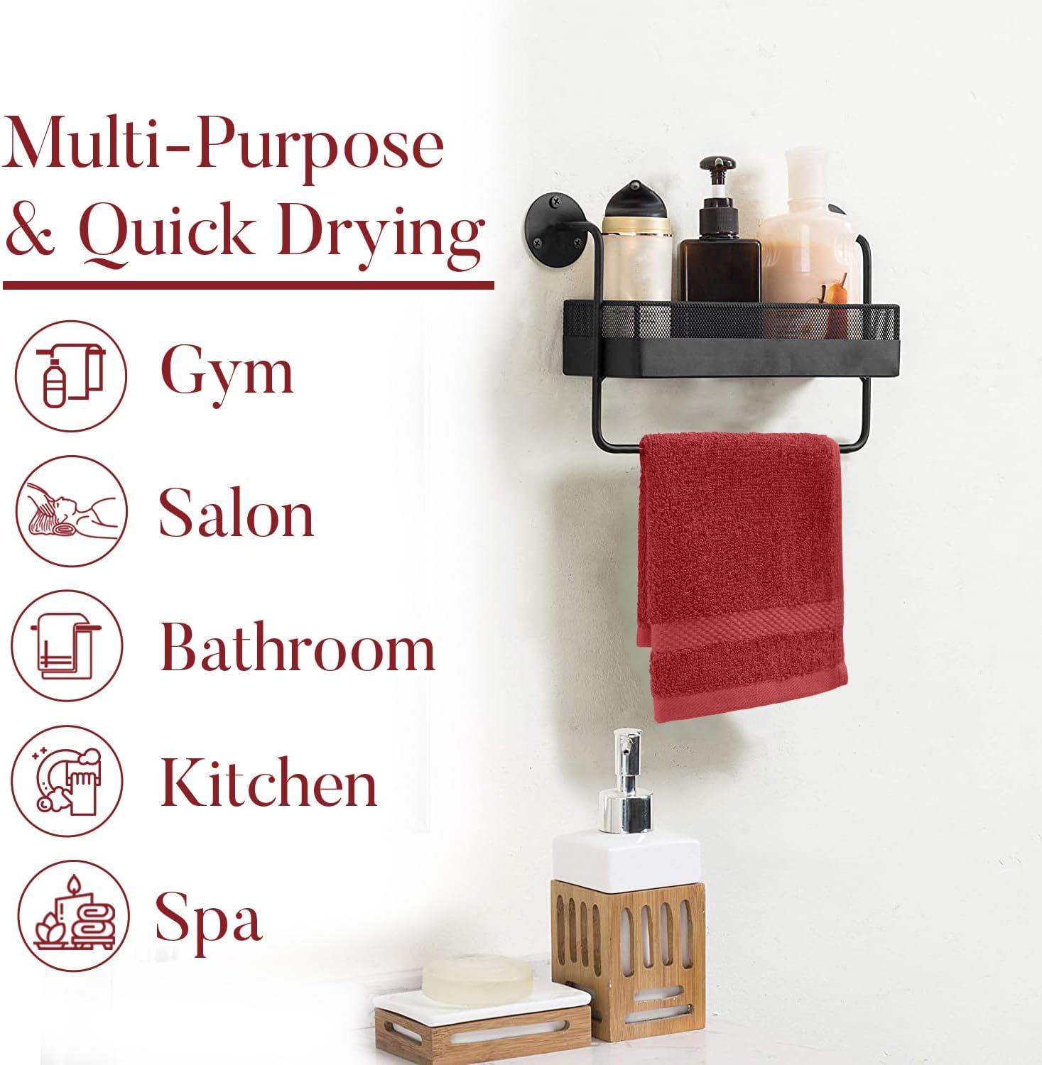 DAN RIVER 12-Pack Premium 100% Cotton RED Face Towels – Reusable Face Towel Set, Soft & Absorbent Small WashCloths for Bathroom & Body – Hand and Face Towels, 550 GSM (12x12 in)