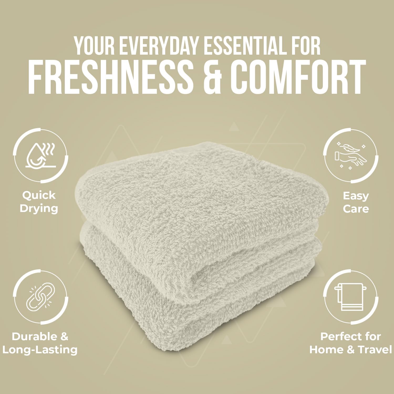 DAN RIVER 100% Cotton Wash Cloths 24 Pack [12x12] Soft & Absorbent face Towels for Bathroom, Gym, Hotels & Spa Perfect for Everyday Use Fingertip Towels, Ivory
