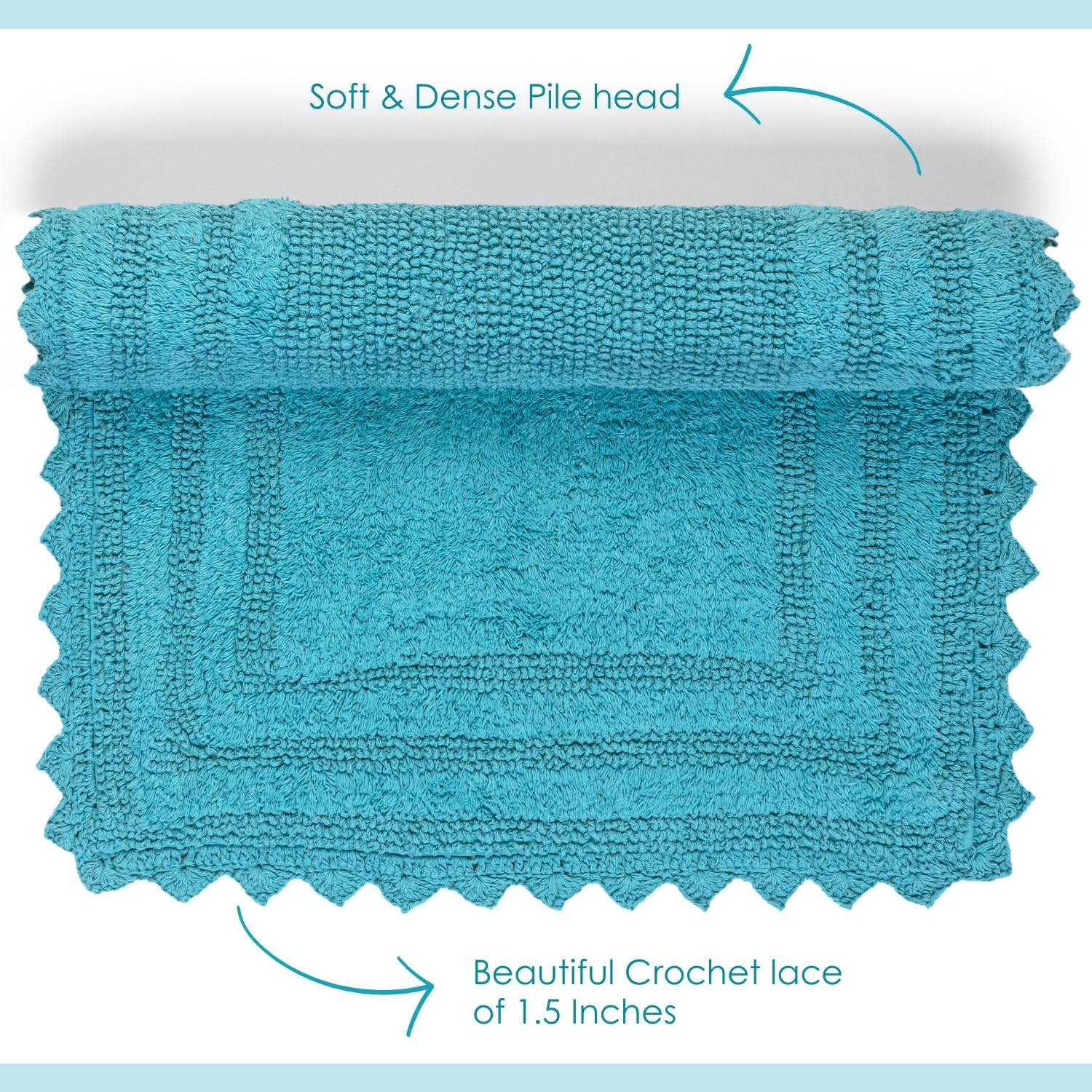 - Premium Cotton Comfort: Crafted from soft, breathable cotton, this bath rug features a crochet-inspired surface that adds texture, comfort, and a cozy feel to your space.