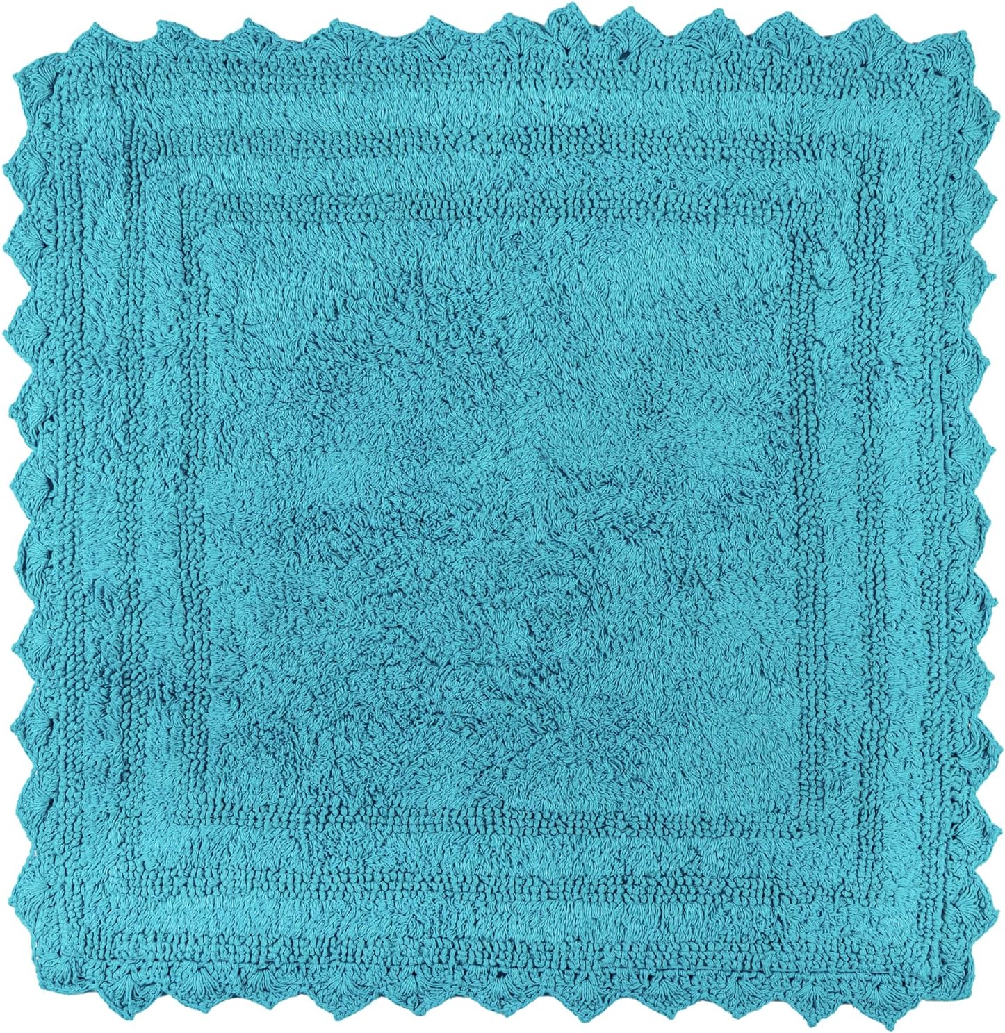 RAJRANG Ocean Bluebird Square Bath Rug – 24 Inch Cotton Bathroom Mat with Crochet Pattern, Reversible and Absorbent Boho Style Rug for Kitchen, Spa, or Vanity Area