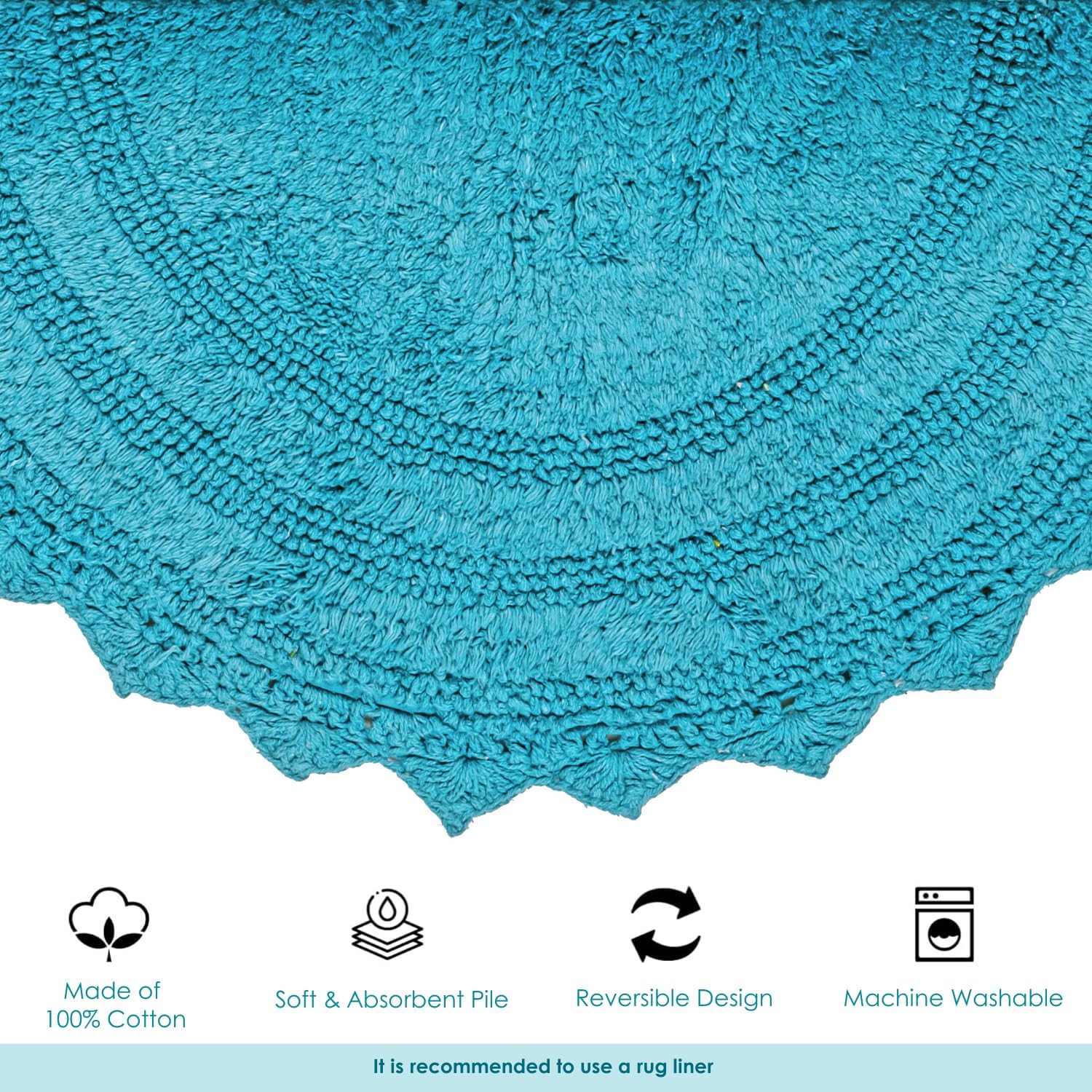 RAJRANG Pearled Bluebird Crochet Cotton Bath Mat | Reversible, Absorbent, Non-Slip Round Rug for Bathroom, Spa & Kitchen | Machine-Washable, 24"