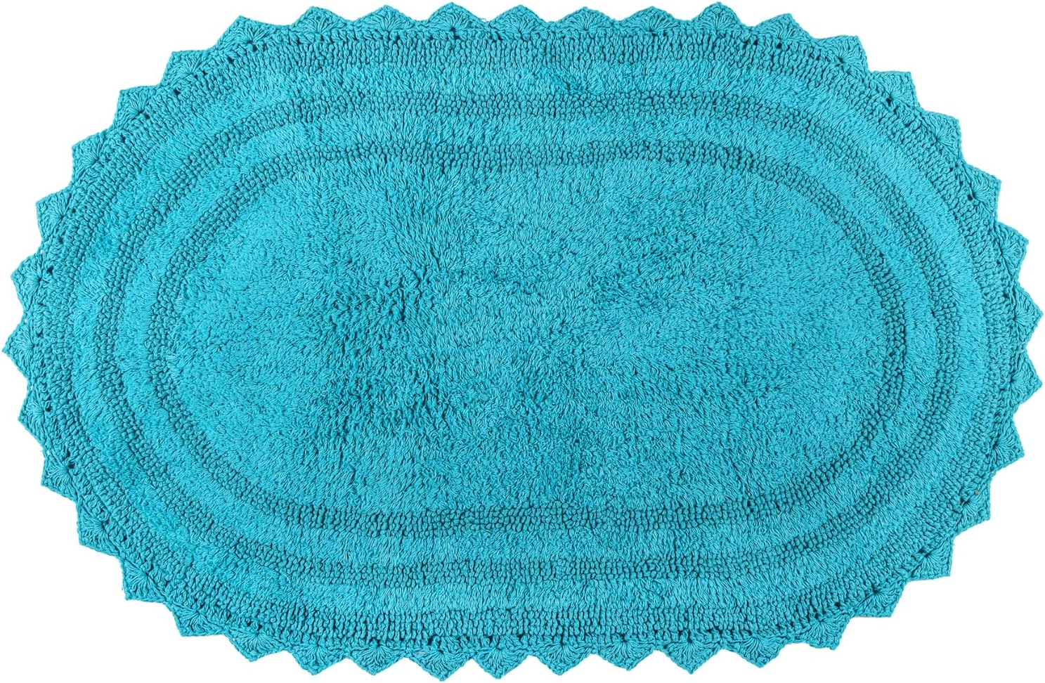 RAJRANG Bluebird Oval Bath Rug – 24x17 Inches Soft Cotton Bathroom Mat with Crochet Pattern, Reversible and Absorbent Rug for Shower, Sink or Toilet Area