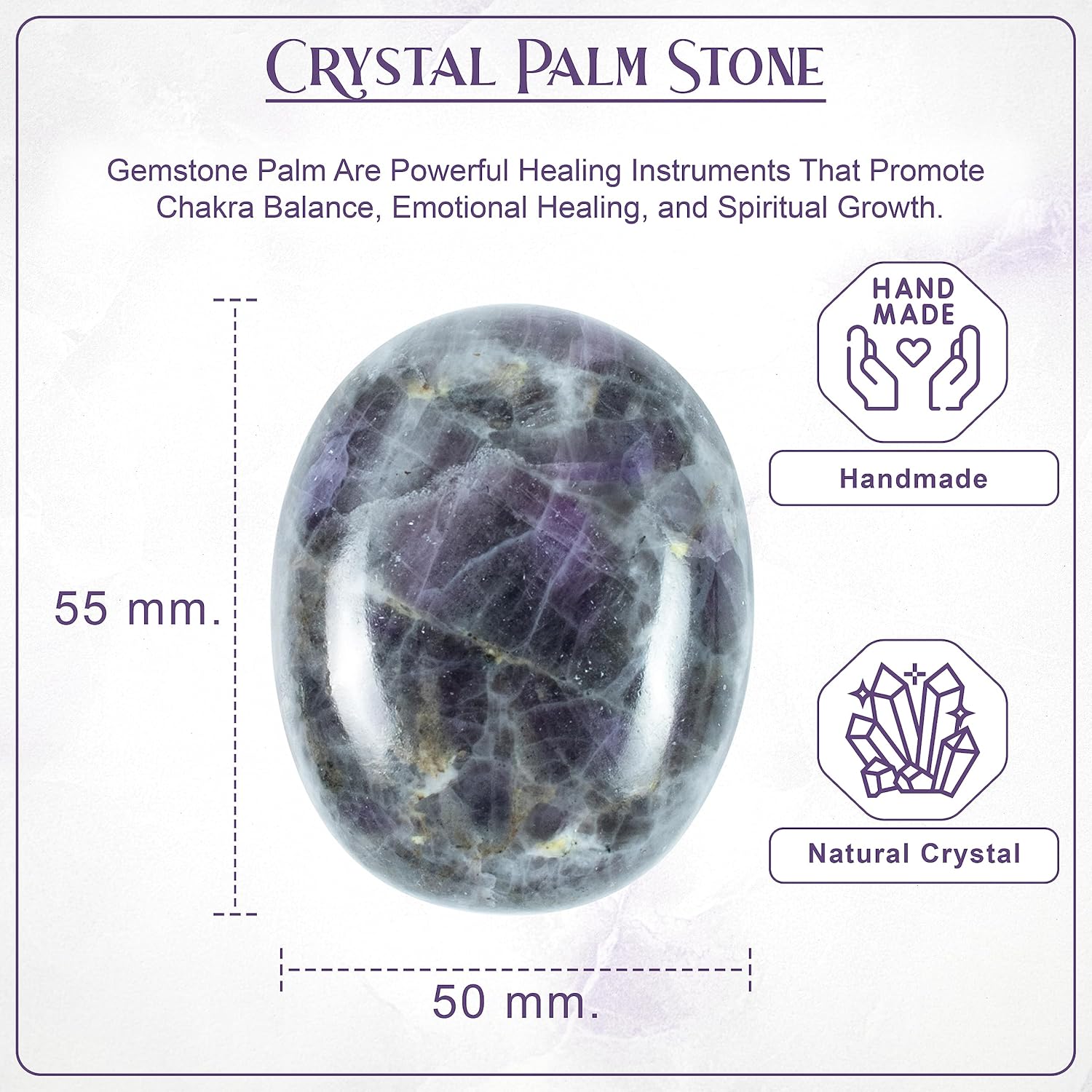 - "? Attention : You will receive similar to the photograph; however, each Handmade palm stone contains a natural stone and will vary slightly in shapes. Absolute care will be taken with packing. However, the Properties and Healing Qualities will be excellent."