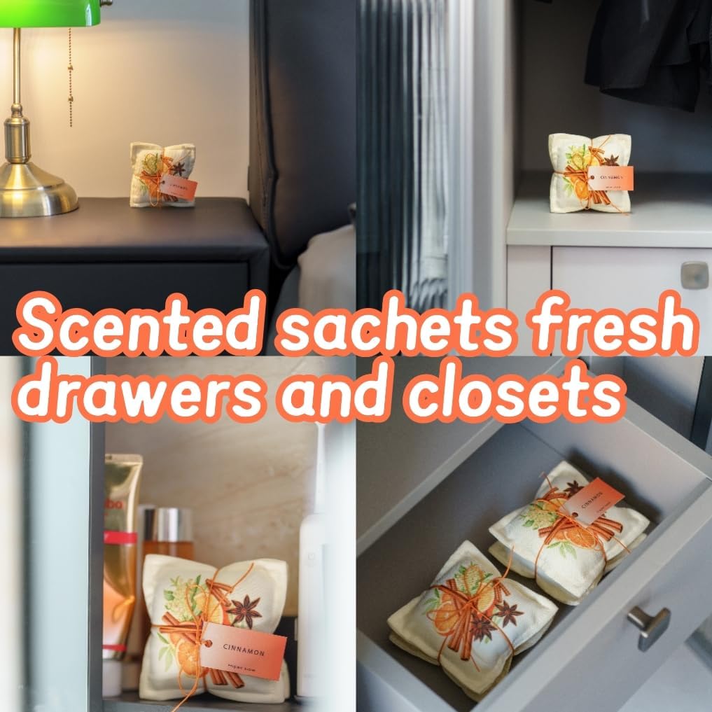 - Hand-Made Sachets: Cinnamon bags are carefully handcrafted by breathable cotton, ensuring aroma to fully permeate drawers and closets, yet, won't dye or harm the outfits like paper sachets packets, add pleasing flavor to bedroom and dress room, fresheners for clothes.