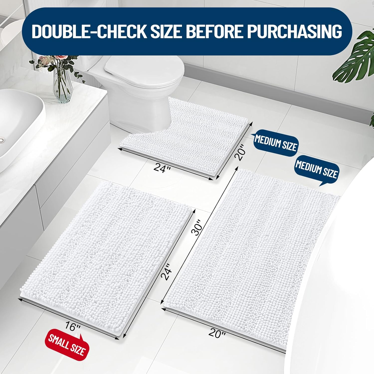 - [Fade-Resistant and Quick-Drying] Our rugs feature premium chenille fabric that's not only ultra-absorbent but also dries quickly. These bathroom mats are easy to clean, and their fade-resistant quality ensures that you can machine wash and dry them as often as needed.
