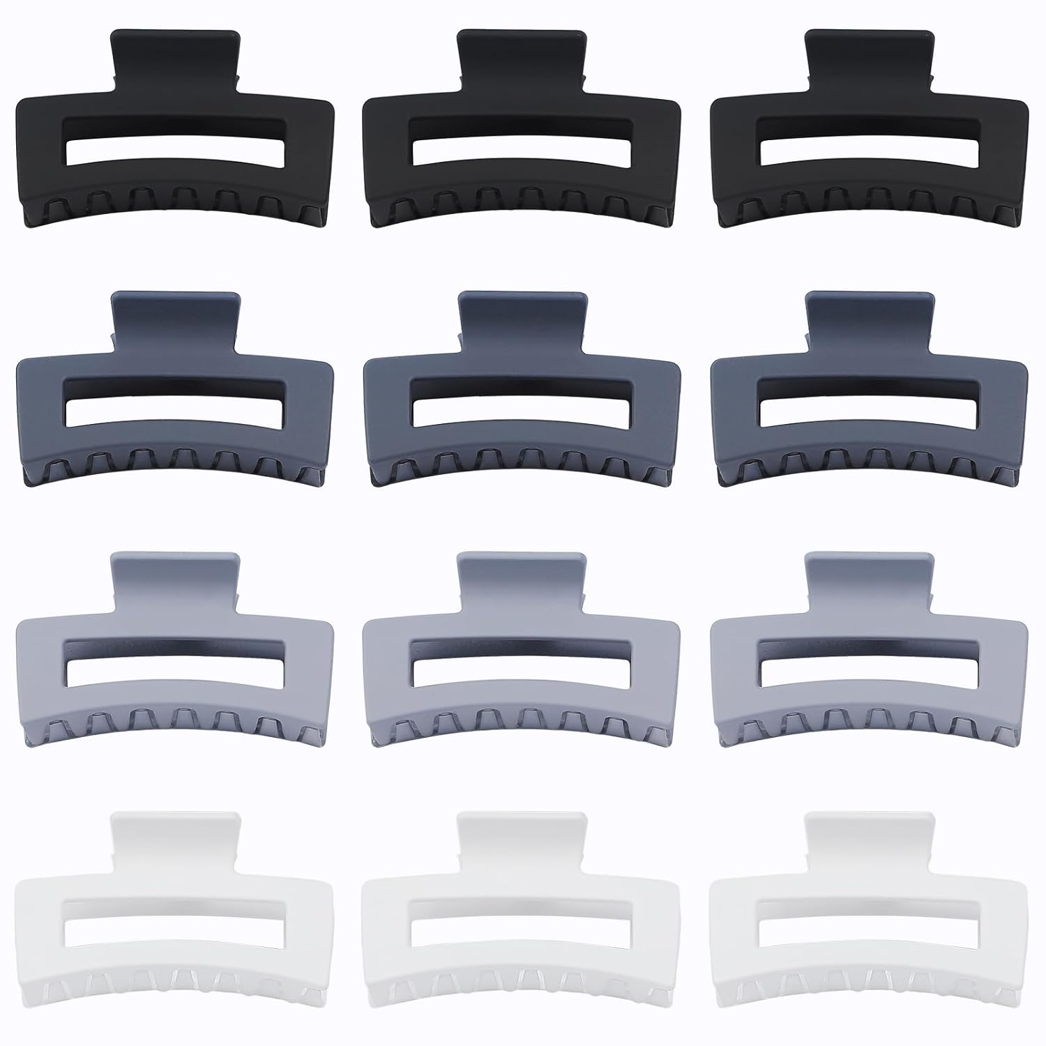 Hair Claw Clips - Medium 3.5 Inch, 12 Pcs Grey Rectangular Jaw Clips for Thick & Thin Hair - Women & Girls
