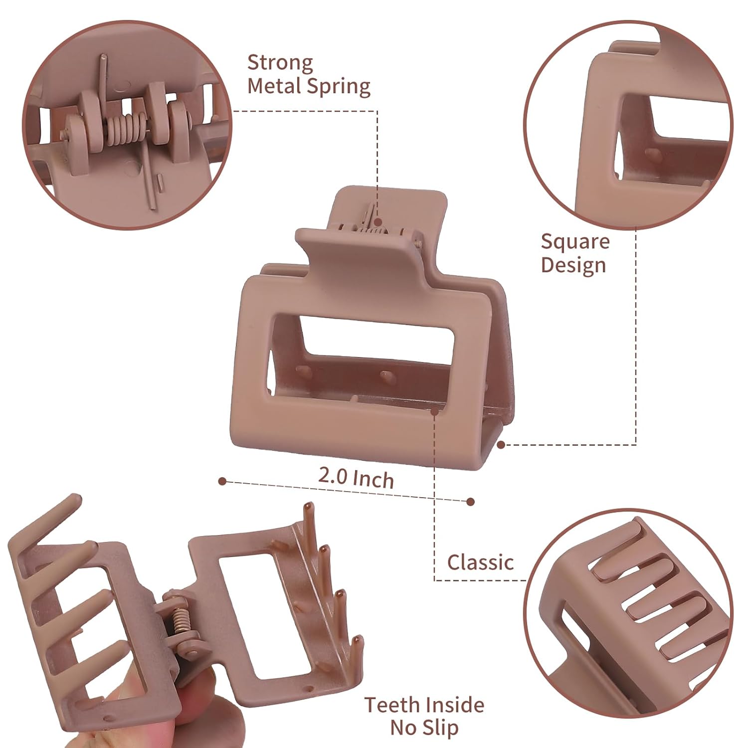 2 Inch Medium Hair Claw Clips 12 Pcs Square Hair Clips for Thin Hair Matte Nonslip Acrylic Banana Jaw Clips Bulk Hair Accessories for women and Girls - Multicolor