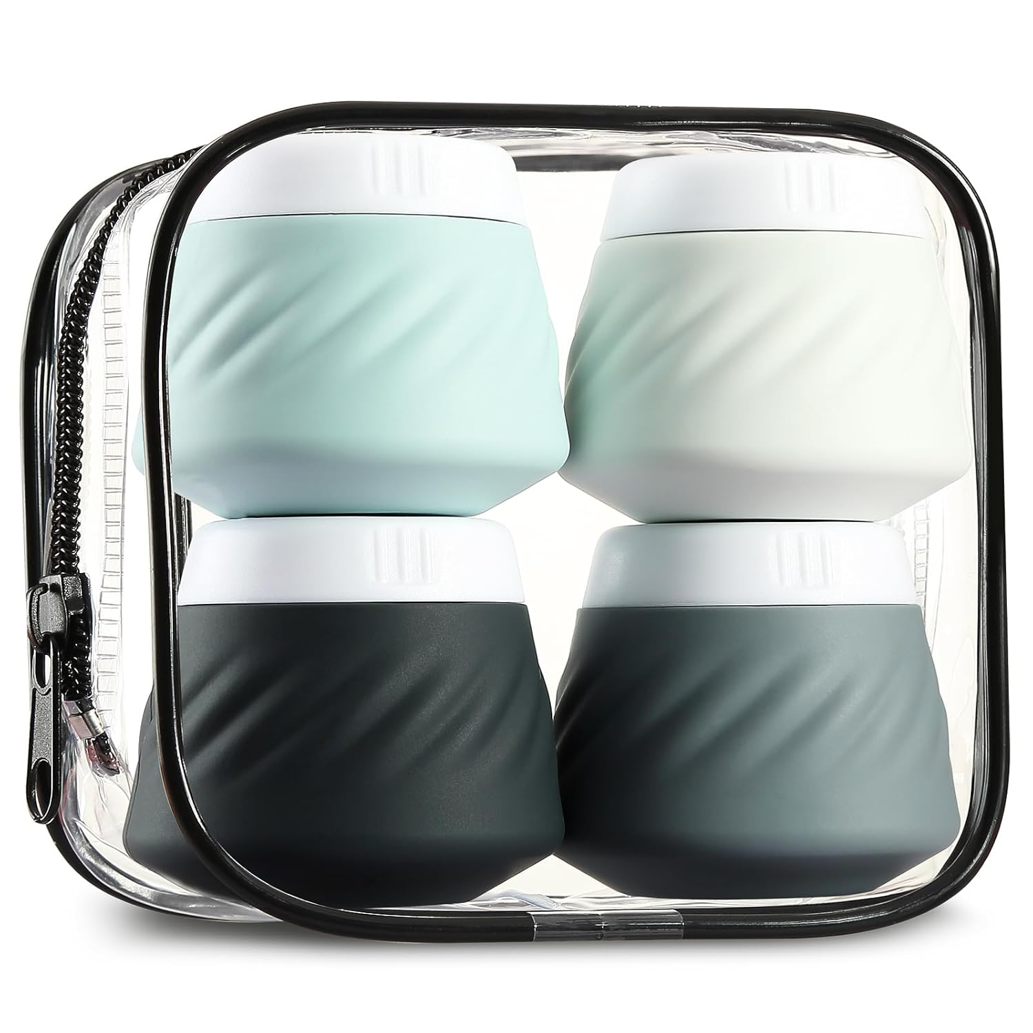 Gemice Silicone Cream Jars TSA Approved Travel Size Containers with Clear Bag, Leak-proof Travel Accessories with Lid for Cosmetic Face Body Hand Cream (4 Pack)