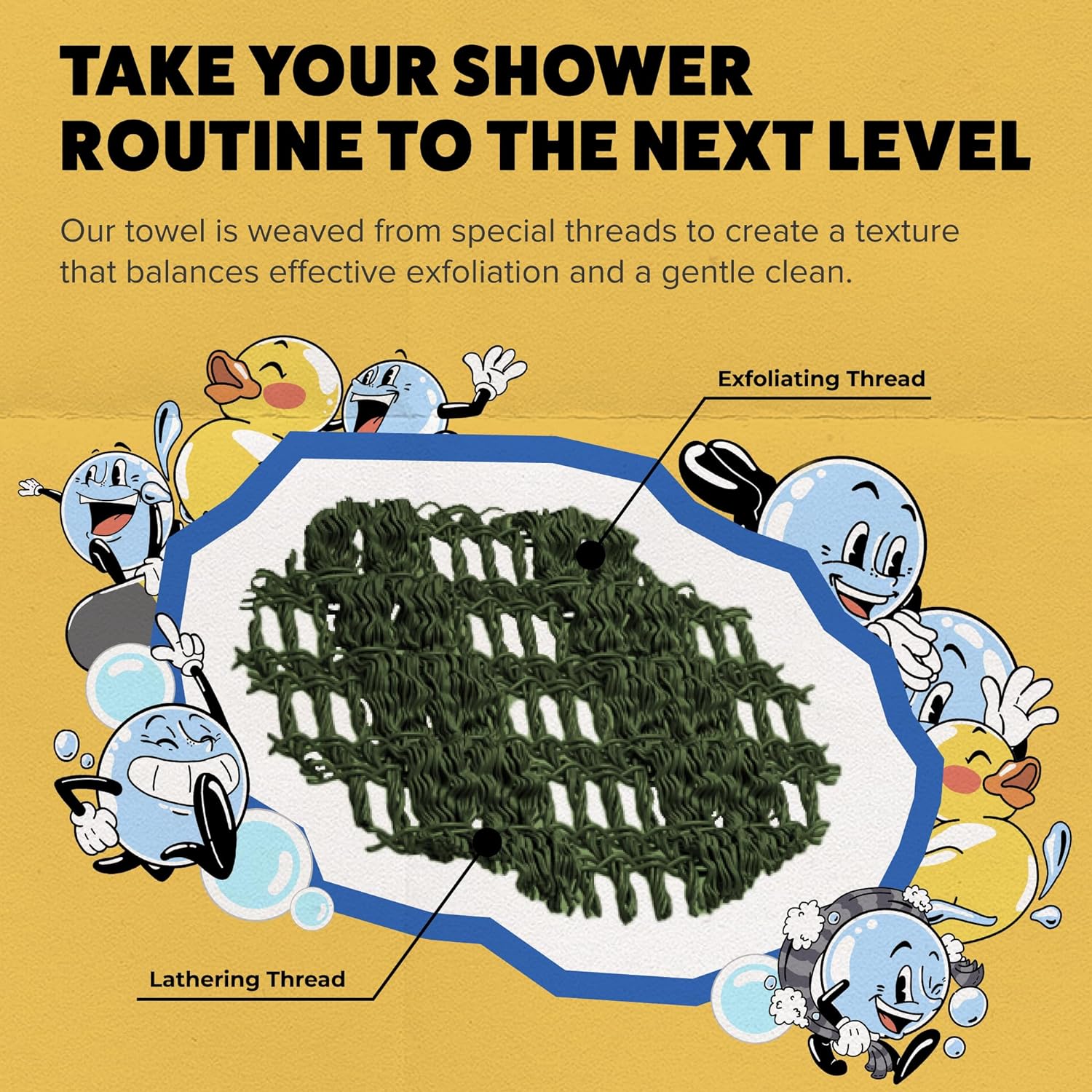 - Signature Rip-Resistant Fabric: Our towel is made up of two uniquely developed threads woven together to balance exfoliant effectiveness and efficient cleanliness. It has a thin lathering thread, tightly woven to create a rich lather for a complete clean. Plus, a textured exfoliating body scrubber thread to scrub away dirt, oil, and dead skin cells, leaving your skin smoother and softer than you ever knew possible.