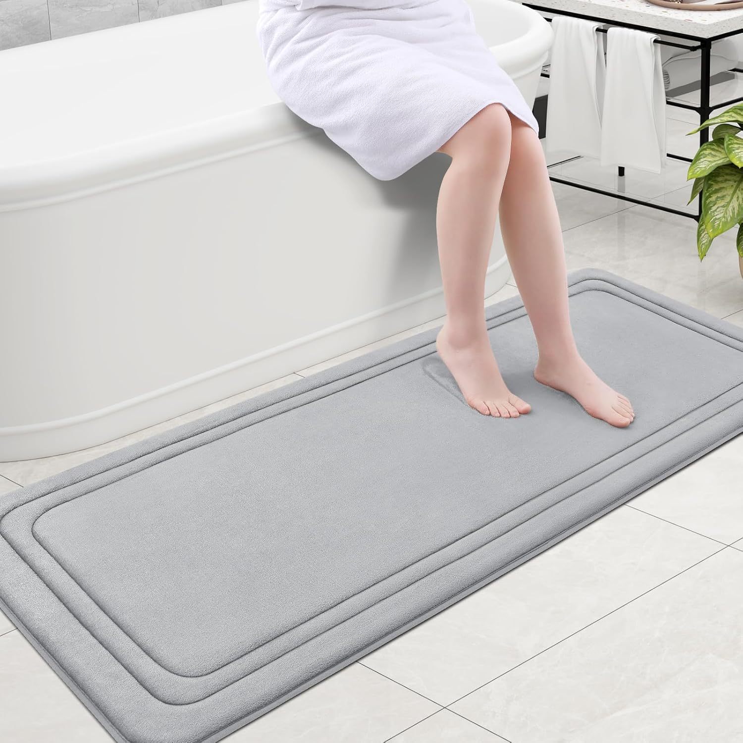Grandaily Memory Foam Bath Mat Rug 59x24, Ultra Soft, Non-Slip and Absorbent Bathroom Rugs, Machine Wash Dry, Comfortable Bath Carpet for Bathroom Floor, Tub and Shower, Grey