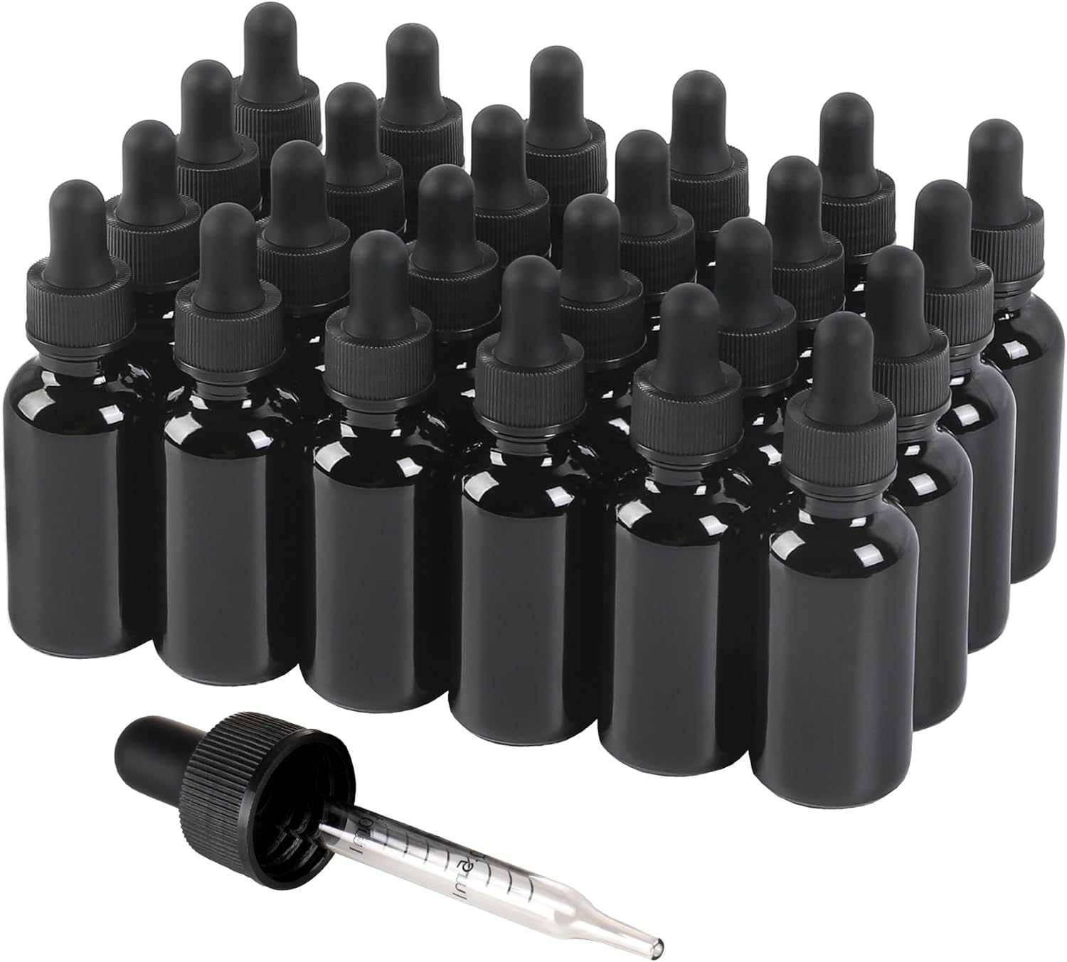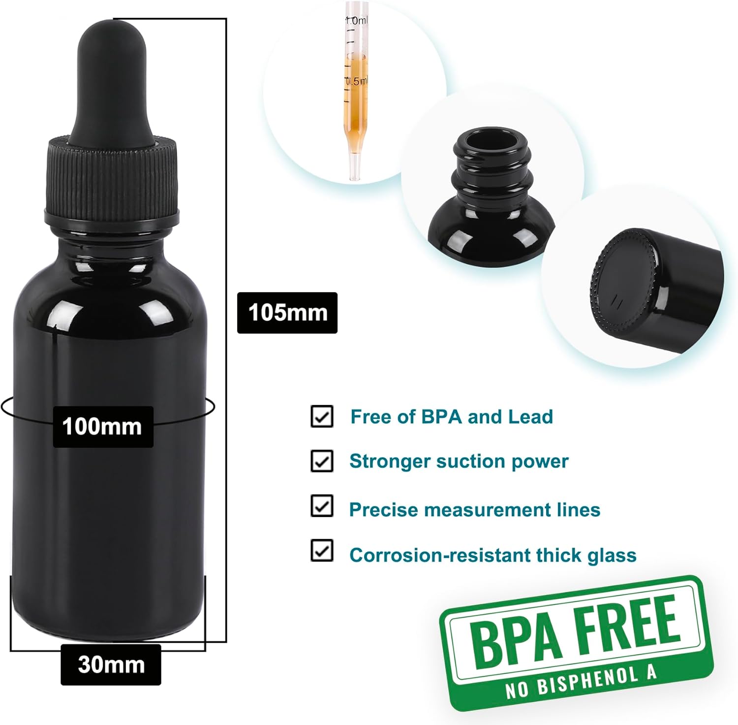 24 Pack,1oz Glass Dropper Bottle,Black Tincture Bottles with Dropper,Pretty Finish for All Kinds of Liquids,Oil Bottles for Hair- Stronger Suction ideal for Leakproof Travel