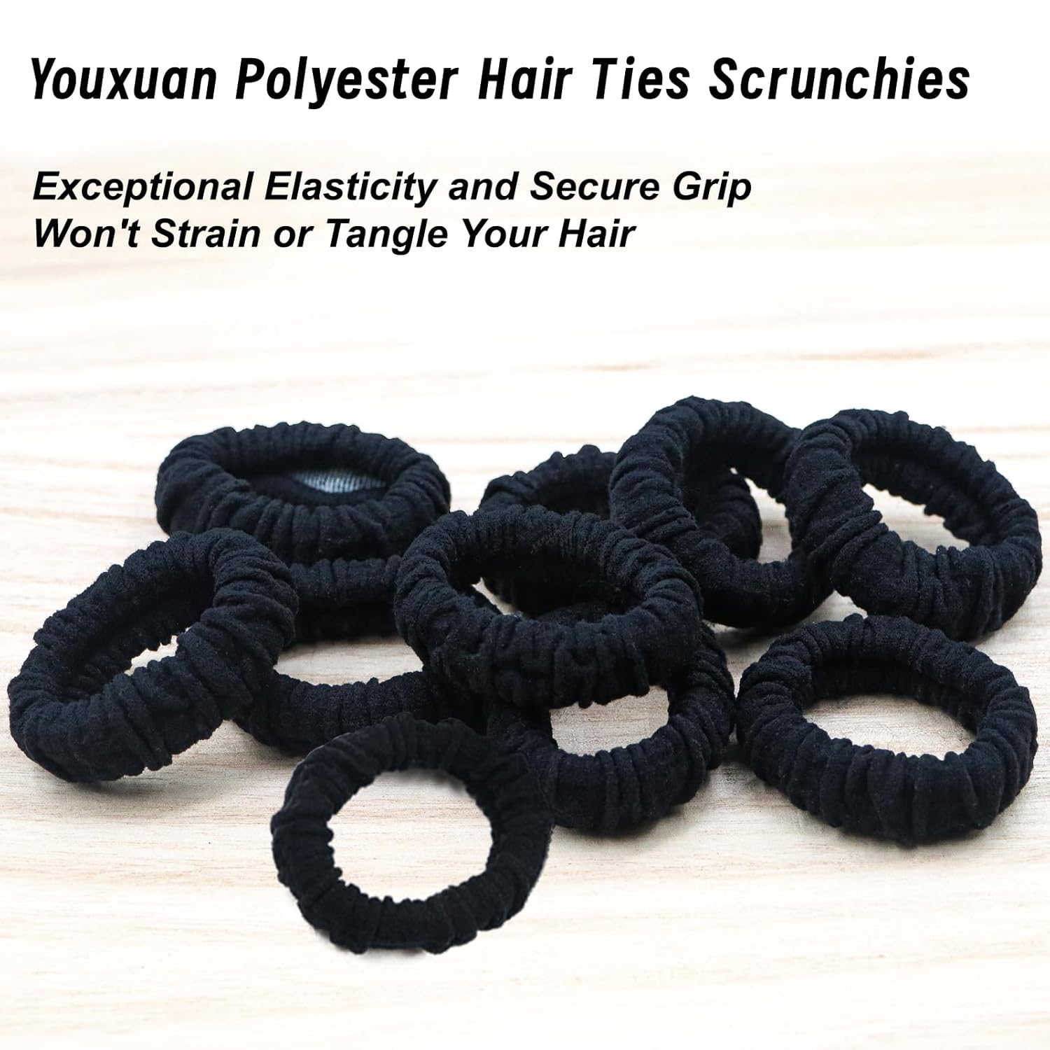 Youxuan No Damage Soft Polyester Hair Ties, No Tug Scrunchies Hair Bands with Strong Elasticity – Black
