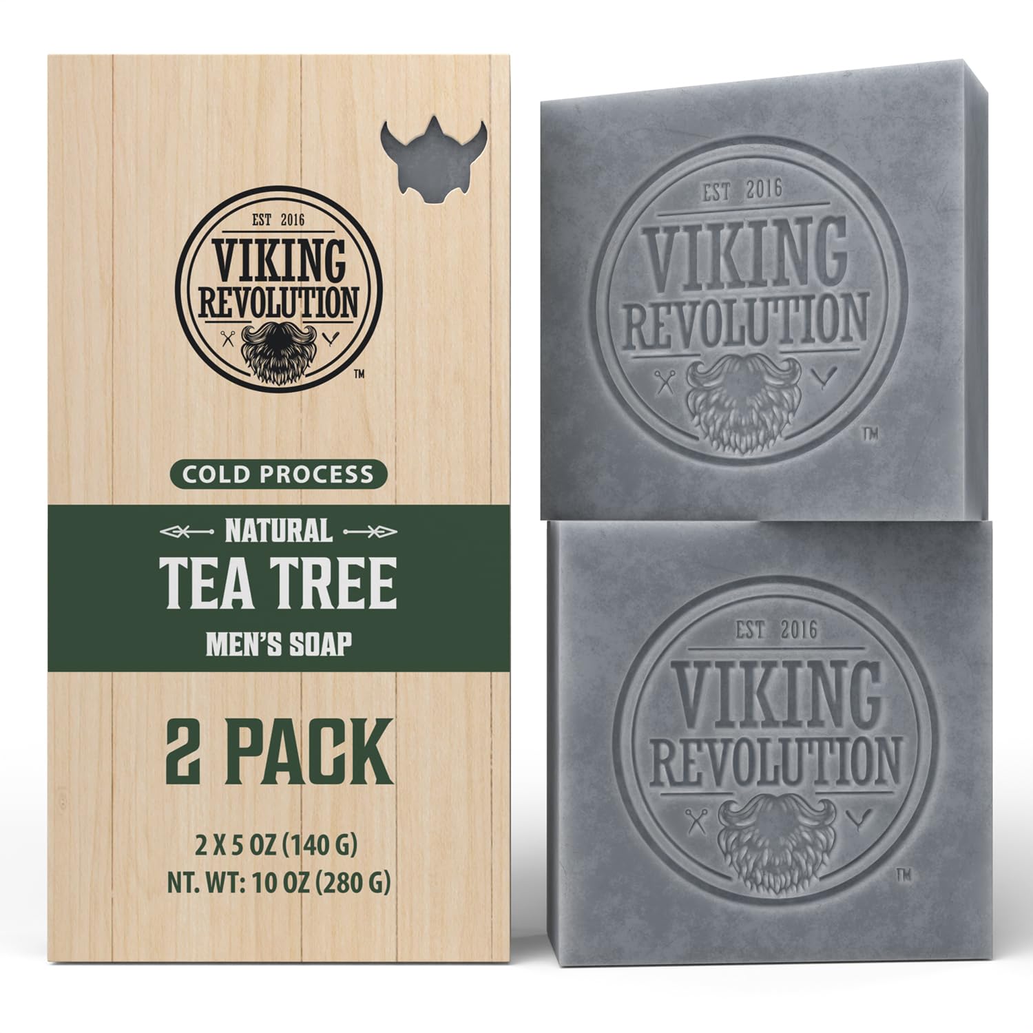 Viking Revolution Tea Tree Natural Soap for Men - Mens Soap Bar with Essential Oils Cold Pressed Bar Soap for Men - Nourishing Mens Bar Soap with Coconut Oil, Shea Oil, Almond Oil (2 Pack)