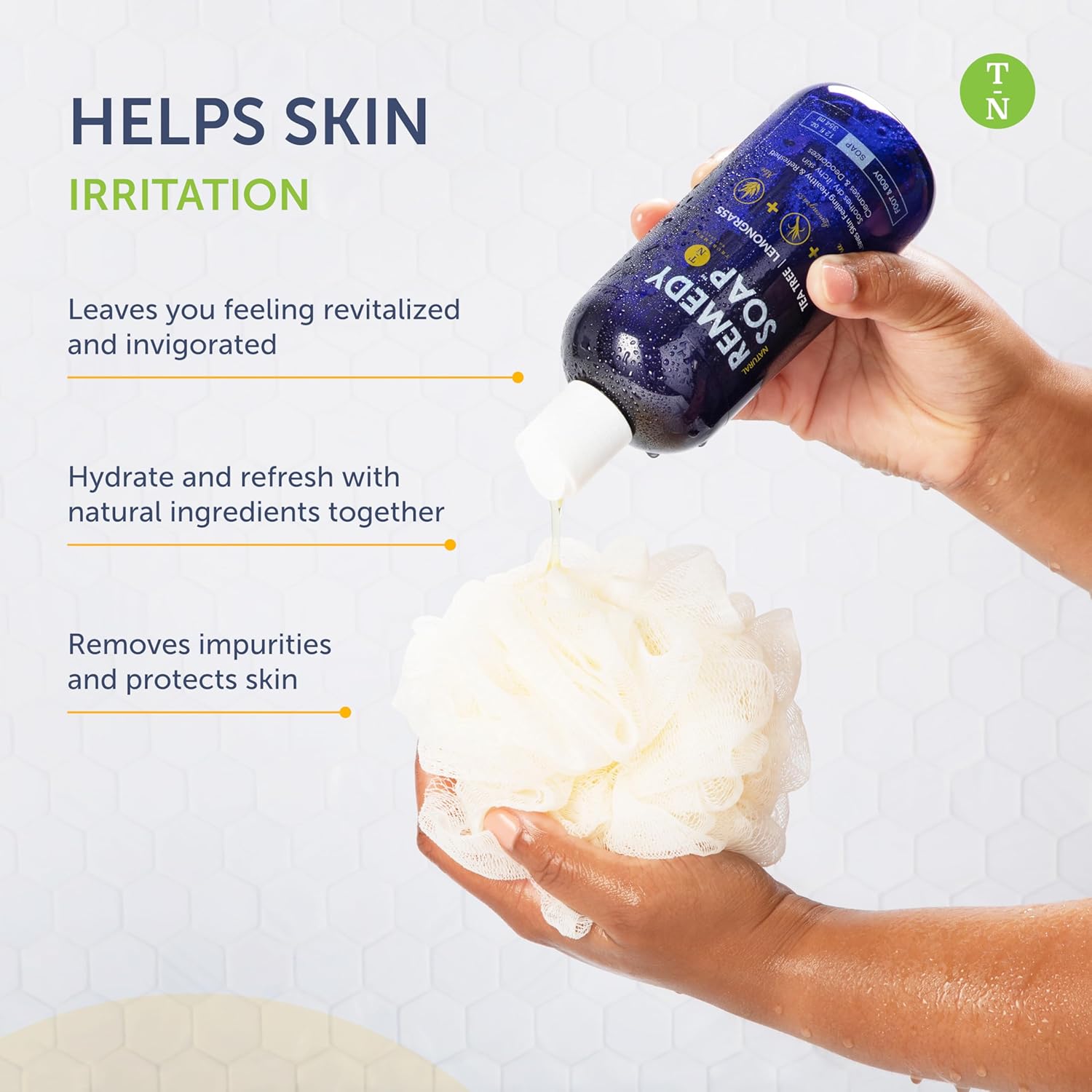 Truremedy Naturals Tea Tree Oil & Lemongrass Body Wash – 12 oz Natural Antifungal Shower Gel for Skin Irritations – Organic Oils, No Sulfates – Refreshing, Moisturizing Soap for Men & Women
