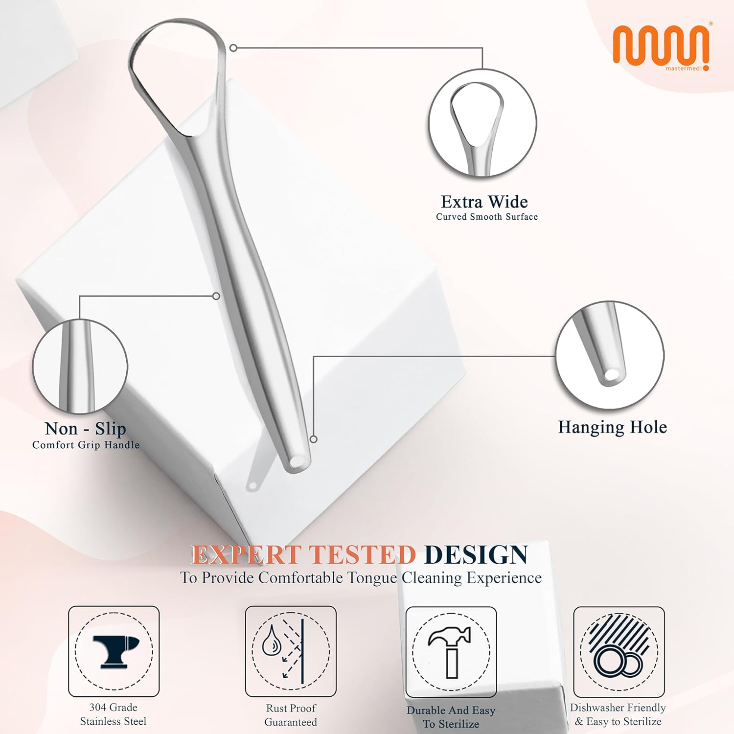 - APPRECIATED BY CUSTOMERS ALL OVER: MasterMedi is a highly regarded brand in dental hygiene. Our products are supported by excellent customer support to ensure your satisfaction. If for any reason you are not happy with our tongue scraper, you can return them within 30 days - no questions asked. We value your feedback and strive to quickly resolve any issues you may have.