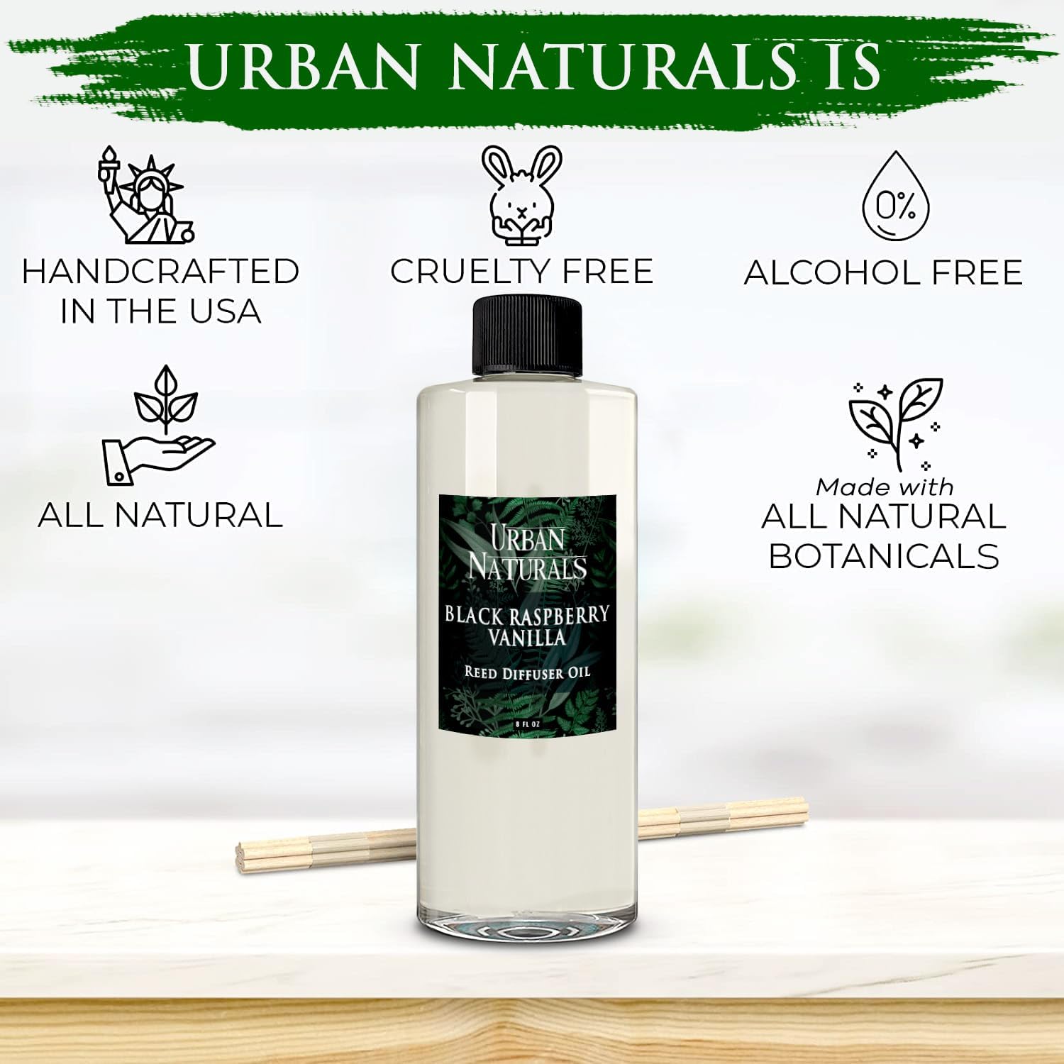 Urban Naturals Reed Diffuser Oil Refill Black Raspberry Vanilla with BlackBerry, Raspberry, Vanilla Orchid, Amber, Sandalwood 8 oz + Free Reed Sticks, Made in The USA