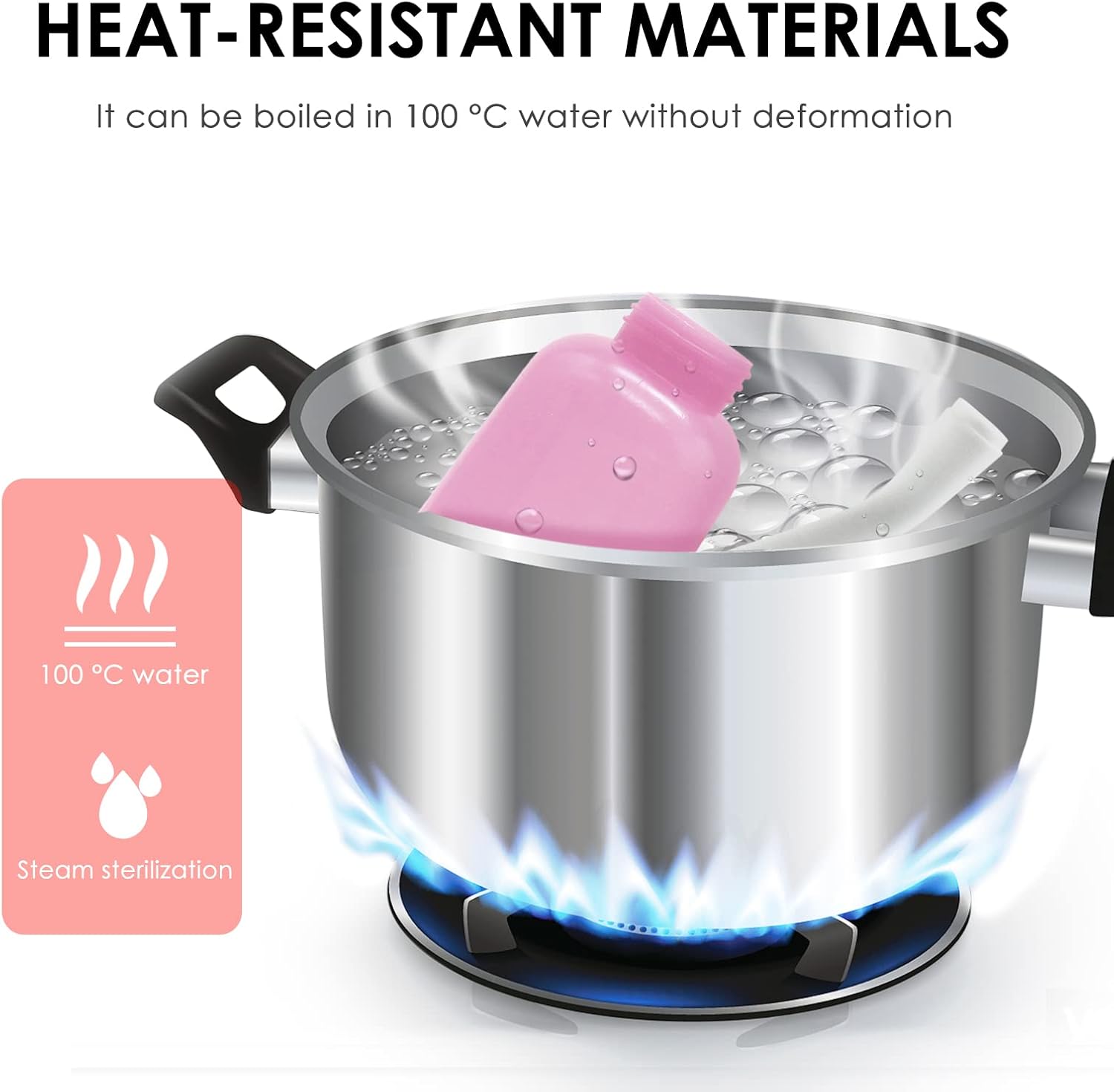 - HIGH TEMPERATURE RESISTANCE: The bottle body is made of TPE material, a soft, flexible material which has the properties and performance of rubber. It can be boiled in 100℃ (212℉) water for disinfection without being deformed by heat. TPE meterial is greener and eco-friendly than EVA and can be processed like plastic and recyclable.