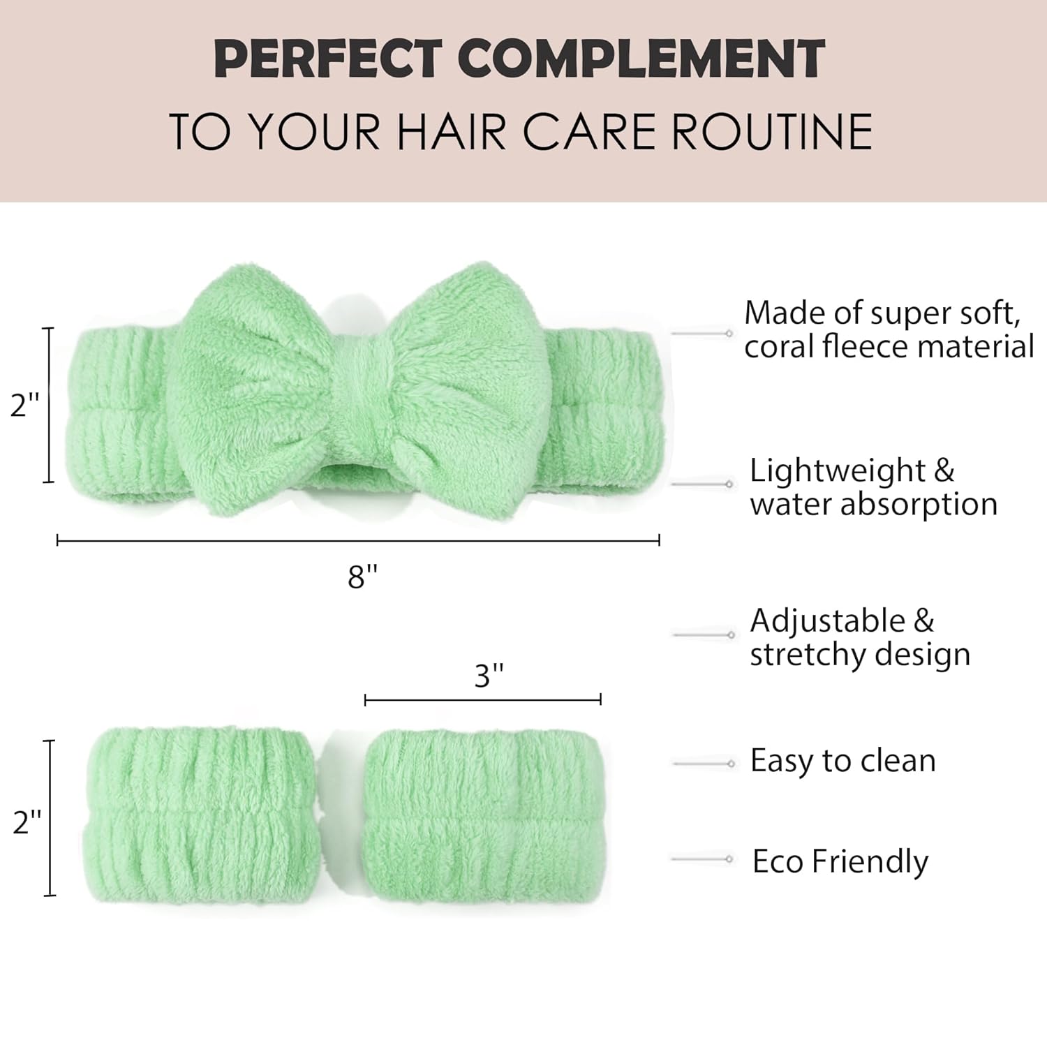 - Spa Headband and Wristband - The set contains 1pairs Face Washing Wristbands and 1 headband ,Unlike other face wash headband styles, this face washing headband includes 1 pairs matching scrunchies that prevents water from running down your arms and can also be used to tie your hair back