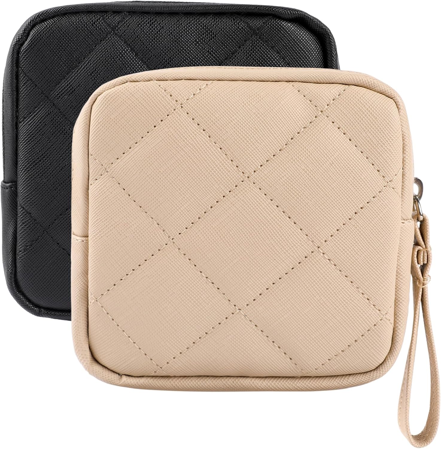 2 Pcs Sanitary Napkin Storage Bag,Period Bag, Period Pouch,Feminine Menstrual Pad Tampon Organizer,Portable Sanitary Pads Pouches First Period Kit for Teen Girls Women Ladies(Black&Beige)