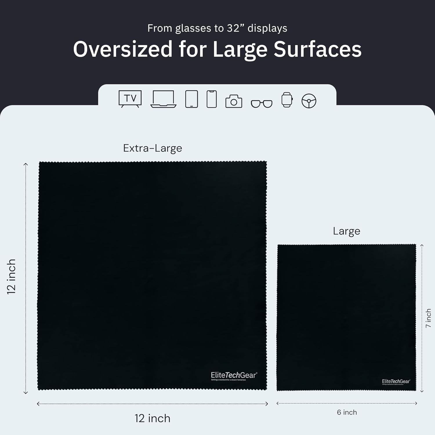 - Innovative Cleaning Solution: Elite Tech Gear's oversized black microfiber cleaning cloths ensure efficient removal of dirt and smudges. These microfiber eyeglass cleaning cloths enhance clarity for glasses and electronic devices alike