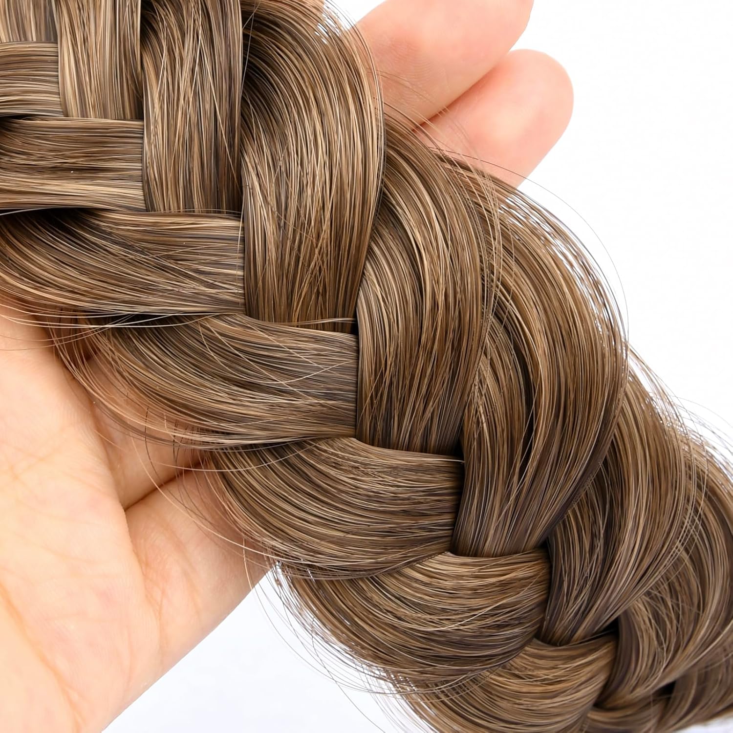 DIGUAN Wide Messy Braided Headband With Teeth Synthetic Hair Plaited Headband High Elasticity Braids Chunky Fishtail Braided Hair Band Hairpiece for Girls Women Beauty Accessory (Claybank)