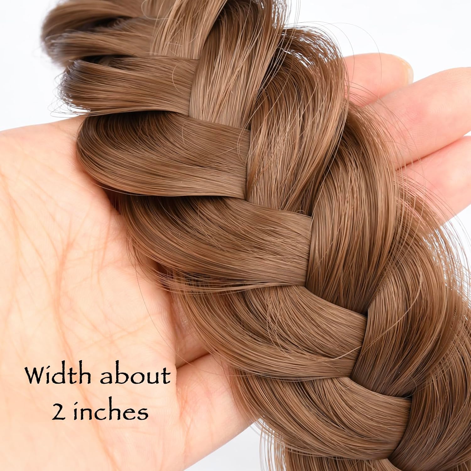 DIGUAN Wide Messy Braided Headband With Teeth Synthetic Hair Plaited Headband High Elasticity Braids Chunky Fishtail Braided Hair Band Hairpiece for Girls Women (Medium Brown)