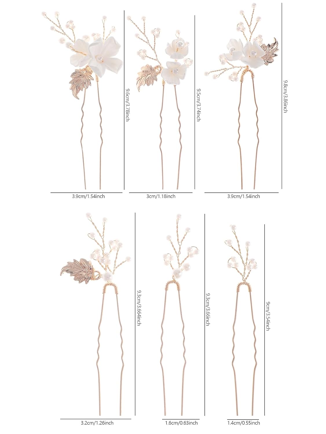 - [ Exquisite Pattern ]: 6 pcs delicate hair pins wedding hair features a romantic design, mutil pearls its flowerlike design can be perfectly match with wedding dress or some special daily outfits.