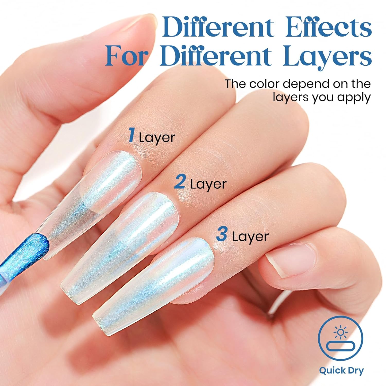 - Fast Dry - Get Out the Door Quickly: Say goodbye to nail lamps with MIZHSE's mermaid pearl nail polish set. Quick dry nail polish reduces complex tools and waiting time that can get desired nail beauty conveniently and efficiently. Experience instant drying time, making it a perfect choice for people on the go