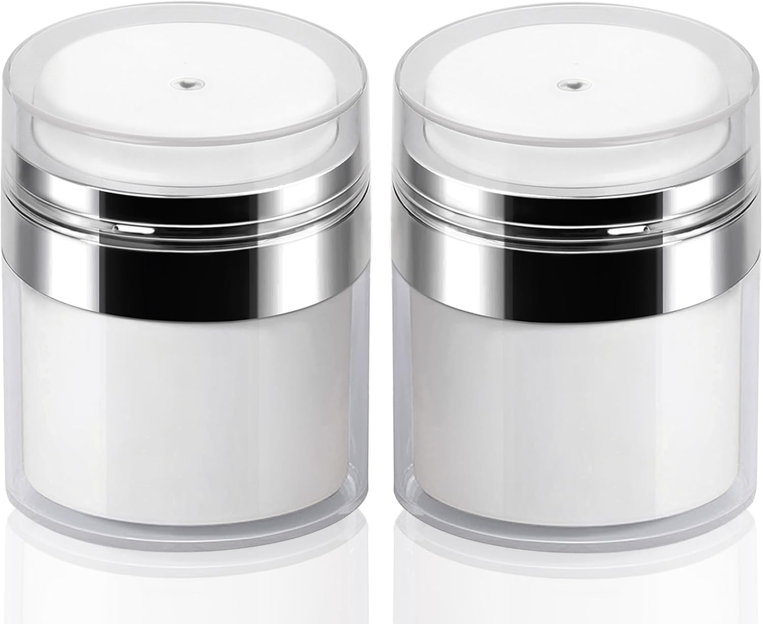 2Pack 50ml Airless Pump Jar - 1.7 Oz Moisturizer Pump Dispenser, Travel Lotion Container Vacuum Bottle for Skincare, Thick Moisturizer
