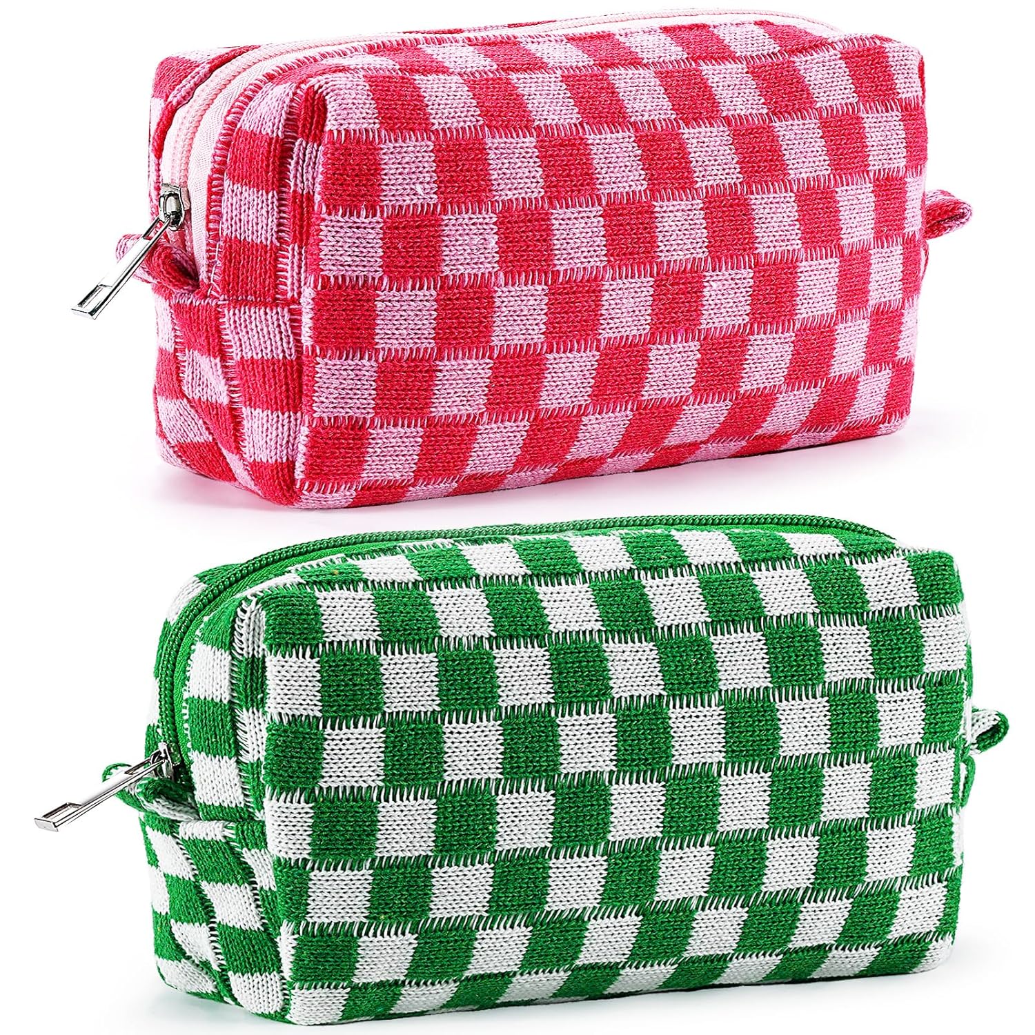 - LARGE CAPACITY AND PREMIUM MATERIAL: The cute makeup bag measure 7.1×4.3 inches, easy to carry. The checkered makeup bag is made of soft knitted fabric, easy to clean. The smaller ones can be used as pencil case or pencil pouch. This makeup travel bag can also hold small items such as makeup, skincare products, lipstick, eye shadow, eyebrow brush, etc. Makeup storage bag for women toiletries