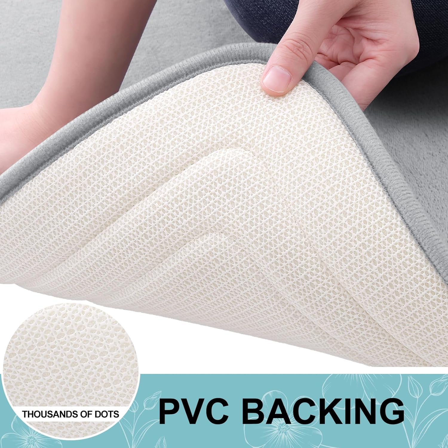 - [STABLE FOOTING] Our bathroom mat is equipped with a robust and enduring PVC backing, preventing shifting and skidding. Unlike mats with rubber backing that may wear off after washing, our bath mat ensures lasting durability. For a secure footing, keep the floor beneath the rug dry and avoid placing it on wet surfaces.