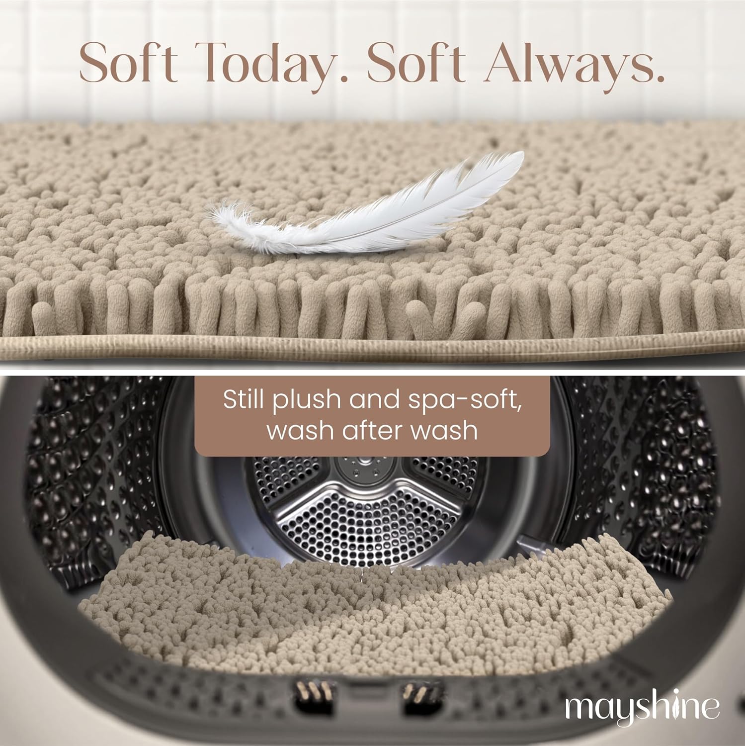 MAYSHINE Plush Shaggy Chenille Bath Mat | Extra Soft, Super Absorbent, Non-Slip Bathroom Rug | Fluffy Microfiber, Area Rug Sets for Bathroom Floor, Kitchen, Living Room | 23"x14" | Beige