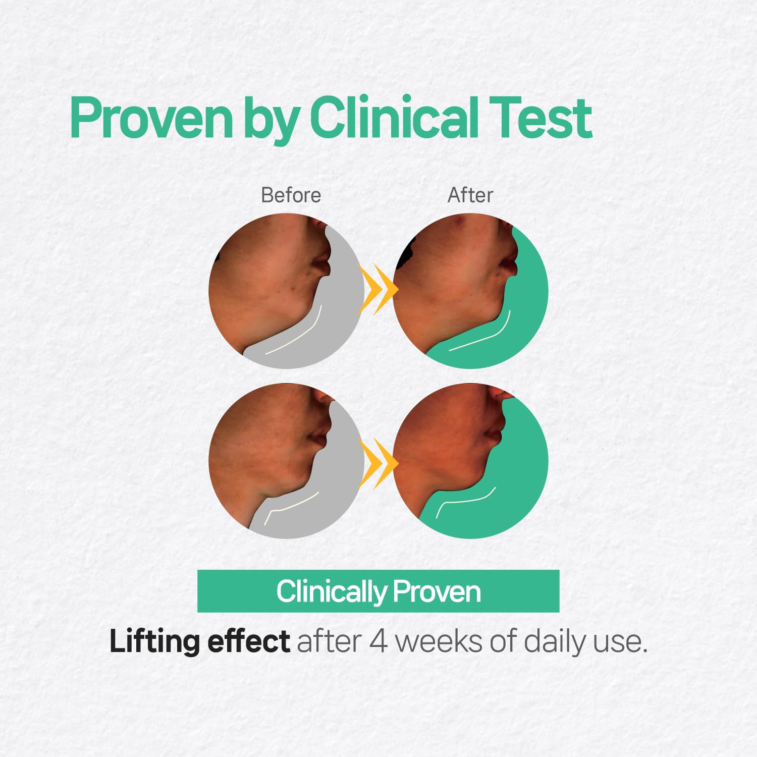 - Clinically Tested & Proven Results – 1. Safe for sensitive skin—Rated "Excellent" in German Derma Test, proving minimal skin irritation. 2. Scientifically tested to improve double chin appearance after 4 weeks of consistent use.