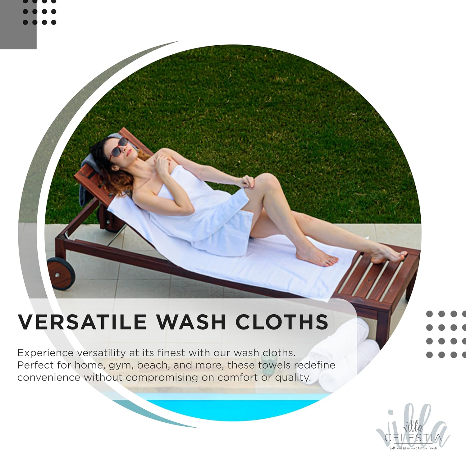 - SAFE & DURABLE: For quality and safety, our washcloths for body and face are OEKO-TEX certified and free from harmful chemicals to protect your skin. The face towel for washing face come in a pack of 12 and measure 12 x12 inches for multi-purpose needs. The double-sided hems do not unravel or fray even after multiple washes. Enjoy an elegant update with our soft washcloths for body that add a distinctive style to your bathroom.