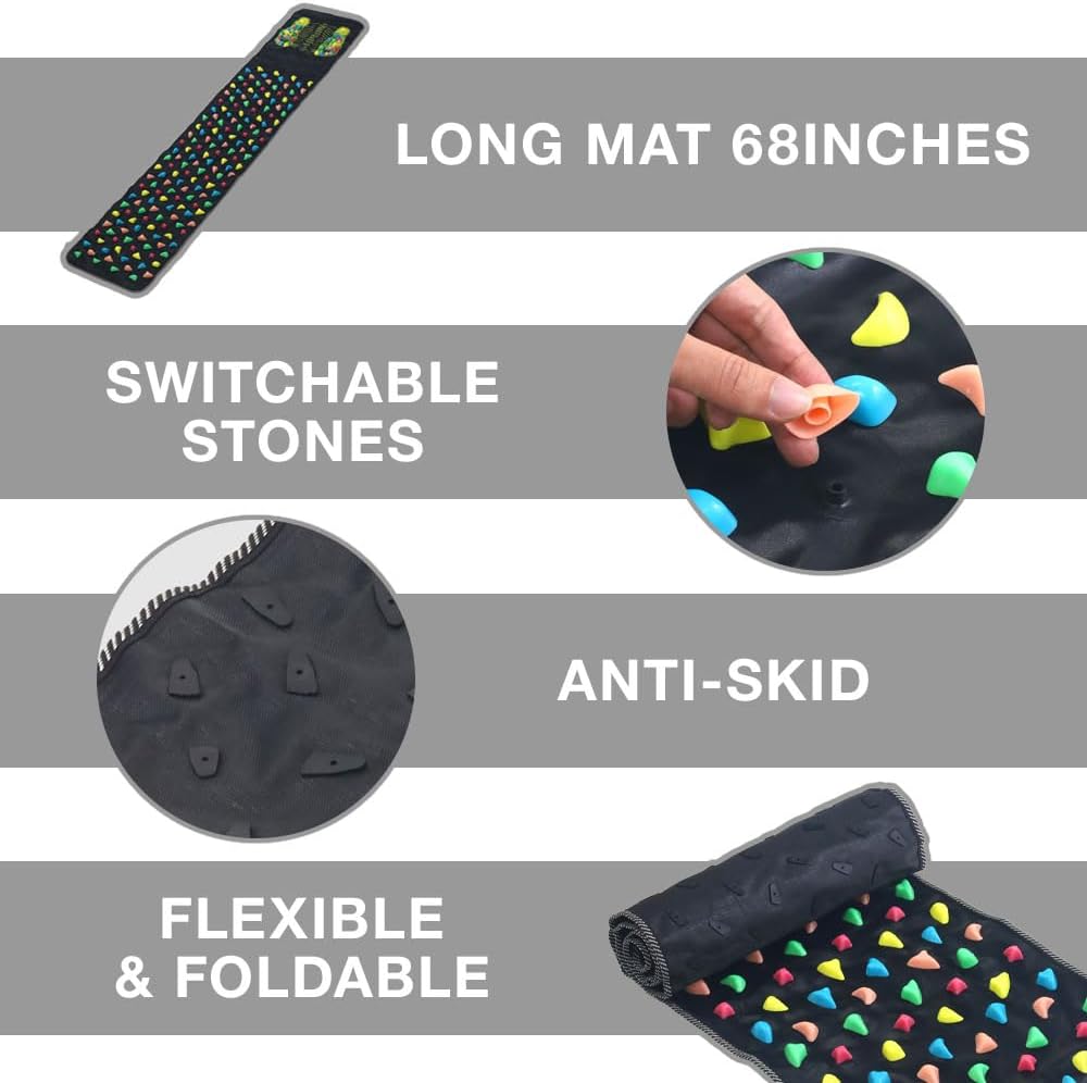 - Long Size with Steppingstones: Stone massage mat is about 68.89 x 13.78 inches / 175 x 35 cm, and you can lay it flat in the room for use; you can also place the foot point mat in the entrance, kitchen, living room and other places where you often walk through, and you can stimulate the acupoints on the soles wisely, while doing household chores or watching TV ***If you feel hard to walk on the pointed stones with sole pains, just try to walk on it sitting on the sofa to get used to the sole pains
