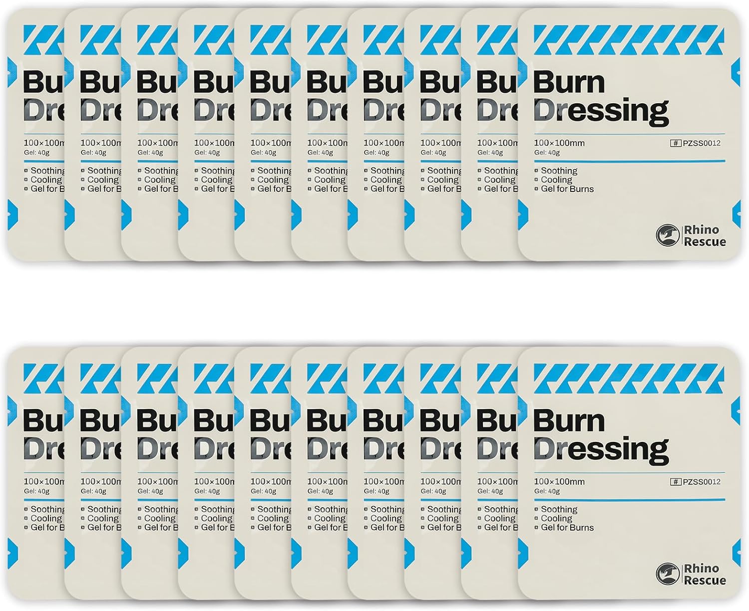 RHINO RESCUE 20 Pack 4" X 4" Burn Dressing, Burn Gel Cooling Soothing Cream Relief Burn First Aid Supplies (20)