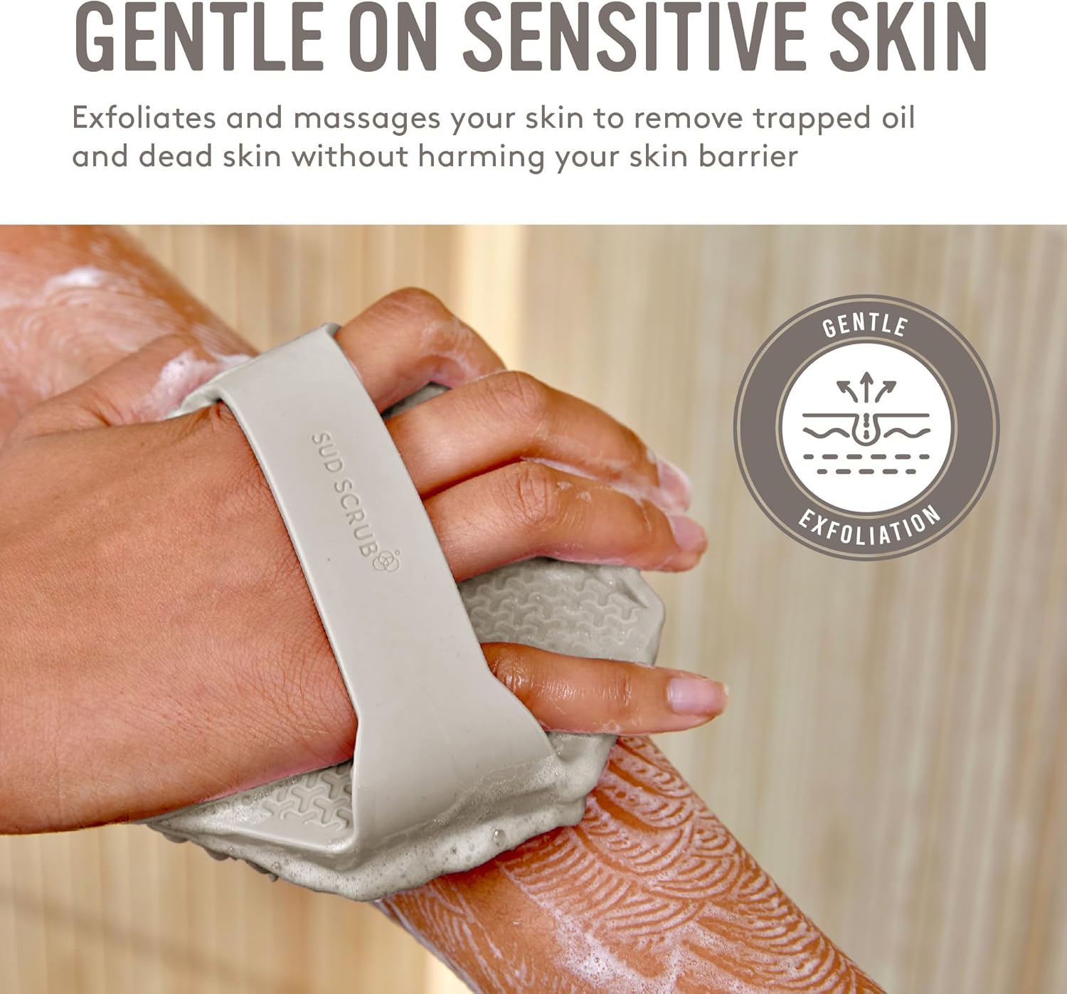 Sud Scrub® Antimicrobial Silicone Body Scrubber, Exfoliating Body Scrubber for Sensitive Skin, Eco Friendly Shower Scrubber for Body, Silicone Body Brush for Showering, Clay