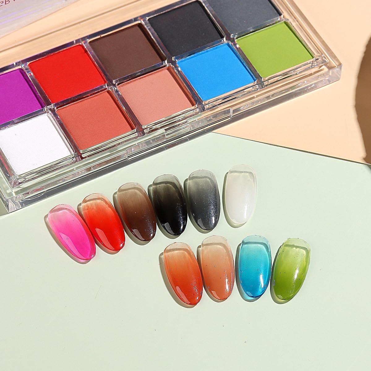 - 【YOU WILL GET】 10 colors in one palette solid nail powder and 10 doubled-head sponge sticks for rubbing nail pigment.