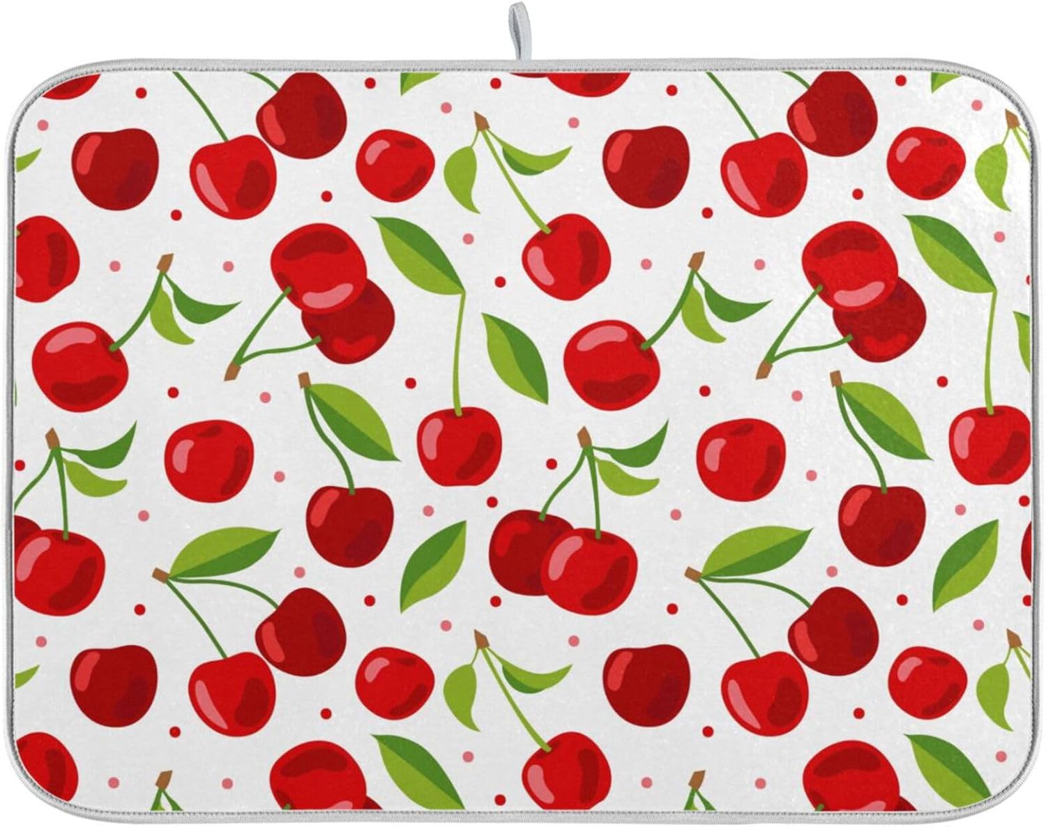 Cherry Fruits Dish Drying Mats for Kitchen 18x24 inch Drying Mat Absorbent Microfiber Dish Mat Drainer Rack Mats Fast Dry for Kitchen Counter