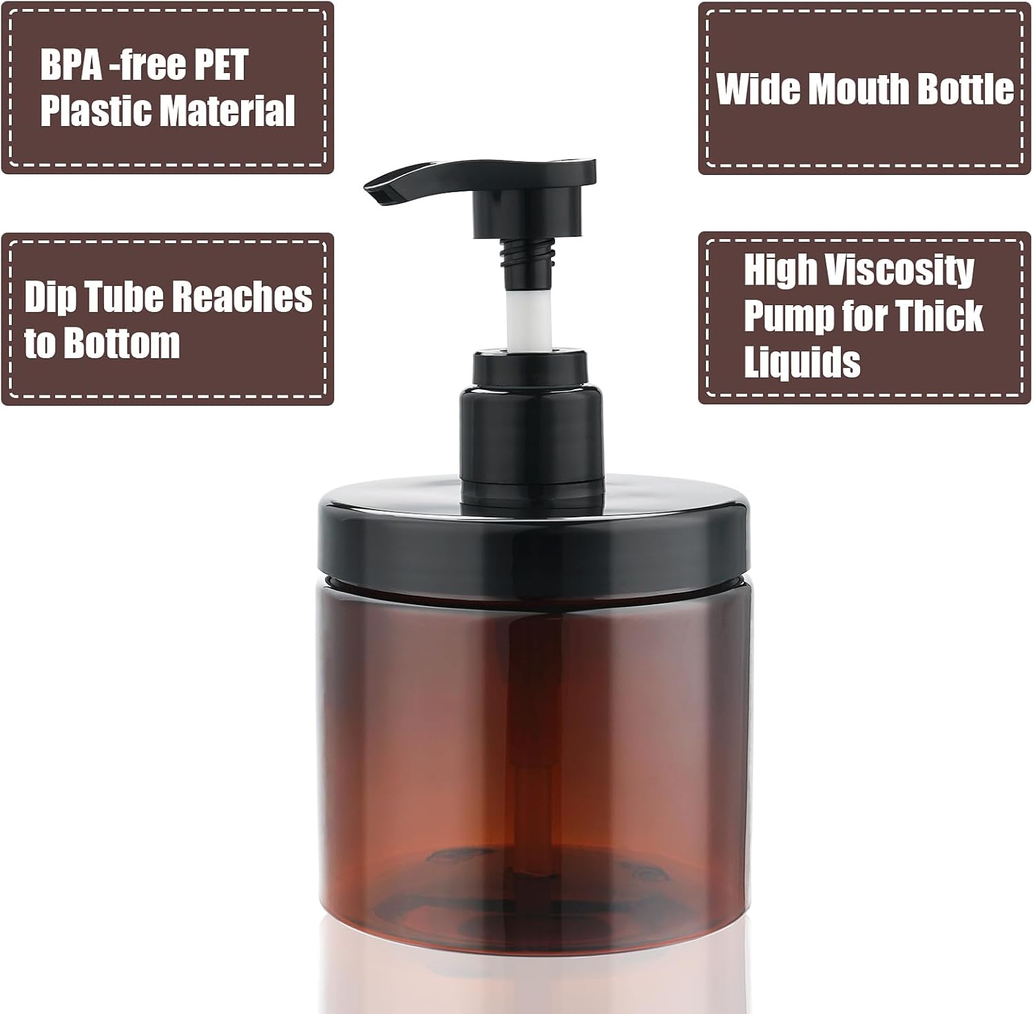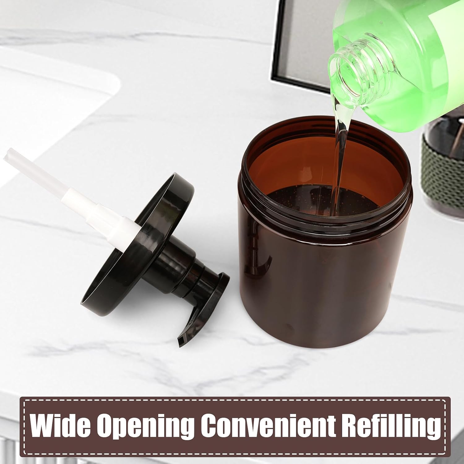 Cosywell Pump Bottle Dispenser Shampoo and Conditioner Dispenser 2 Pack 16.9oz/500ml Wide Mouth Hand Soap Dispenser Refillable Plastic Empty Liquid Container for Lotion Body Wash(Brown)