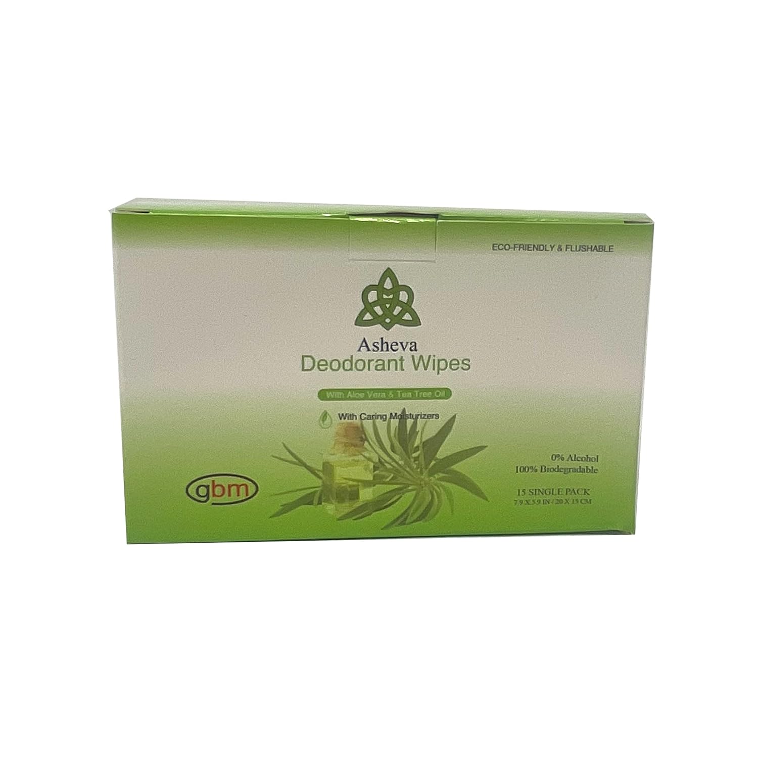 Asheva - Individually Packaged Deodorant Wipes - Box of 15 Wipes (Tea Tree)
