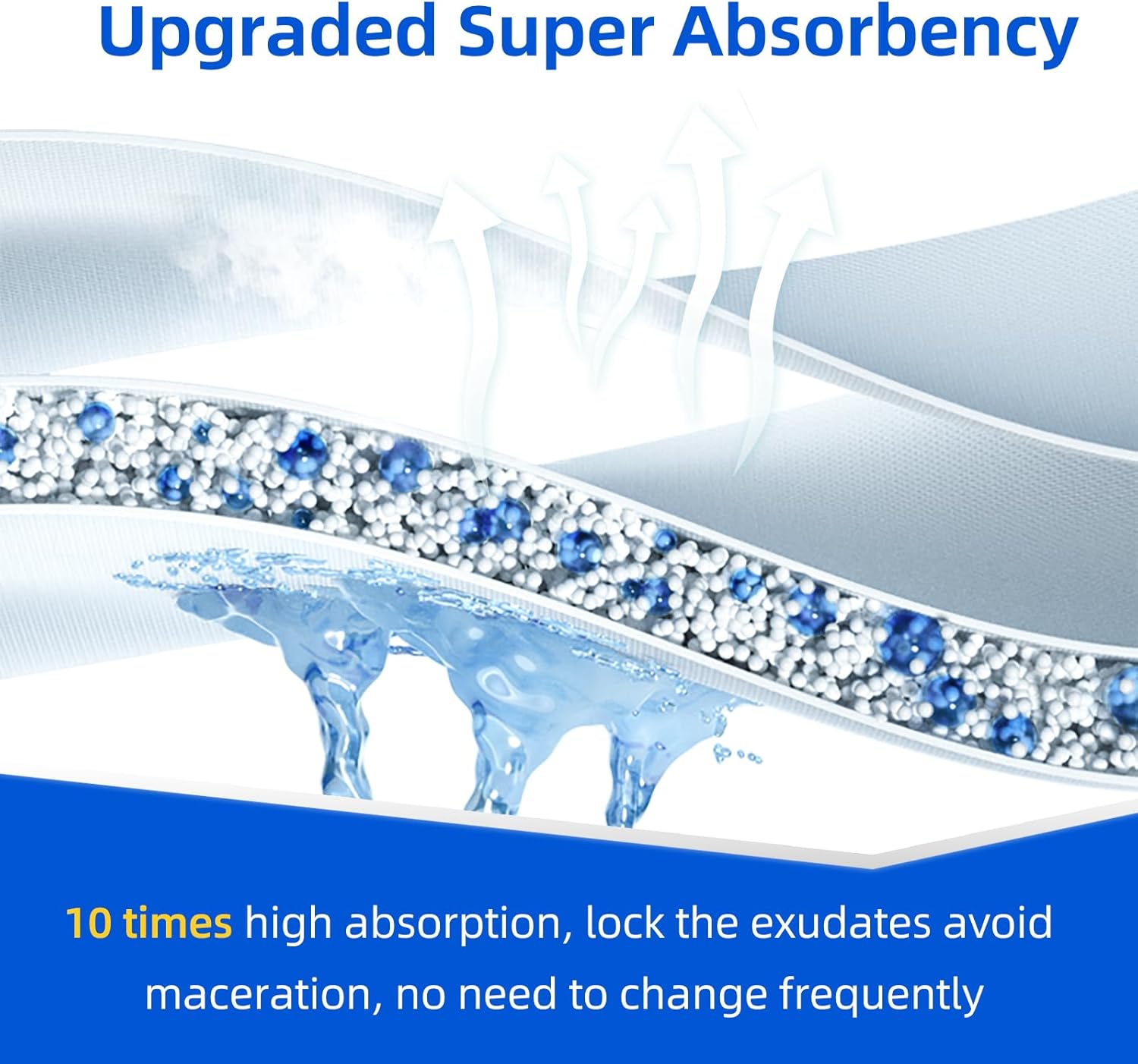 - 【Upgrade Material, More Comfortable】The upgraded silicone foam dressing is softer, enabling it to adhere perfectly to the wound surface, Absorb 15 times the amount of wound fluid. Silicone helps reduce skin irritation, lowers the risk of allergic reactions, and can be painlessly removed, ensuring your wound receives meticulous care, the first choice product for wound care.