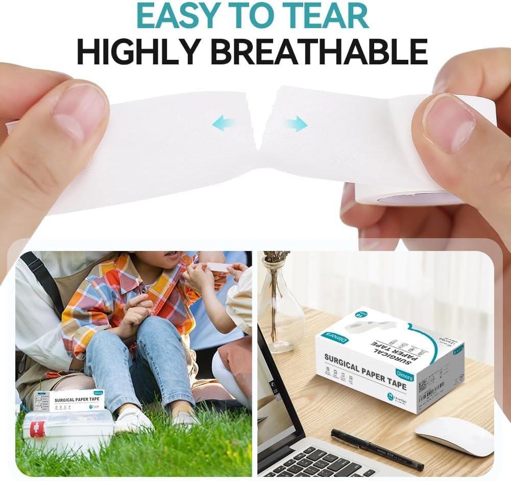 - Pain free use - this gentle paper tape doesn’t leave residue on your skin, sticks well, and is really easy to tear without damaging delicate areas